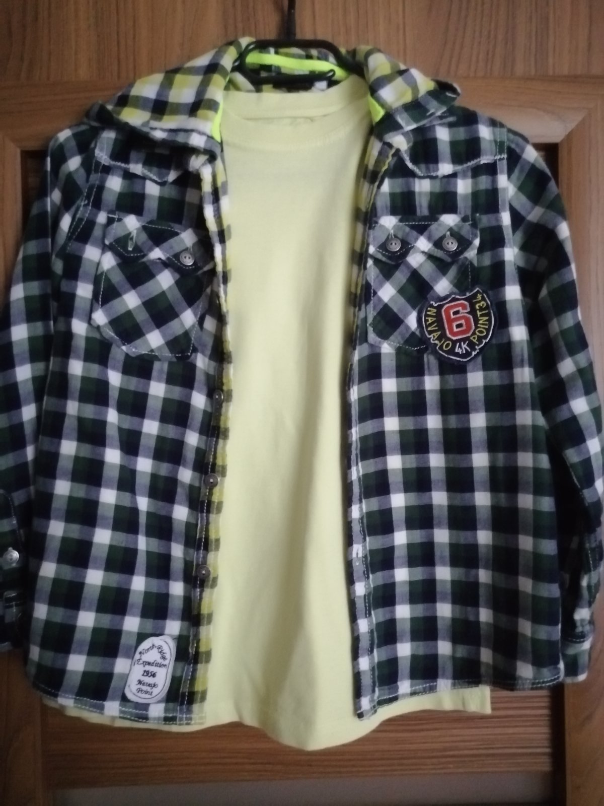 Výborný stav, bez poškodení. Košeľa s kapucňou a s tričkom s dlhým rukávom.