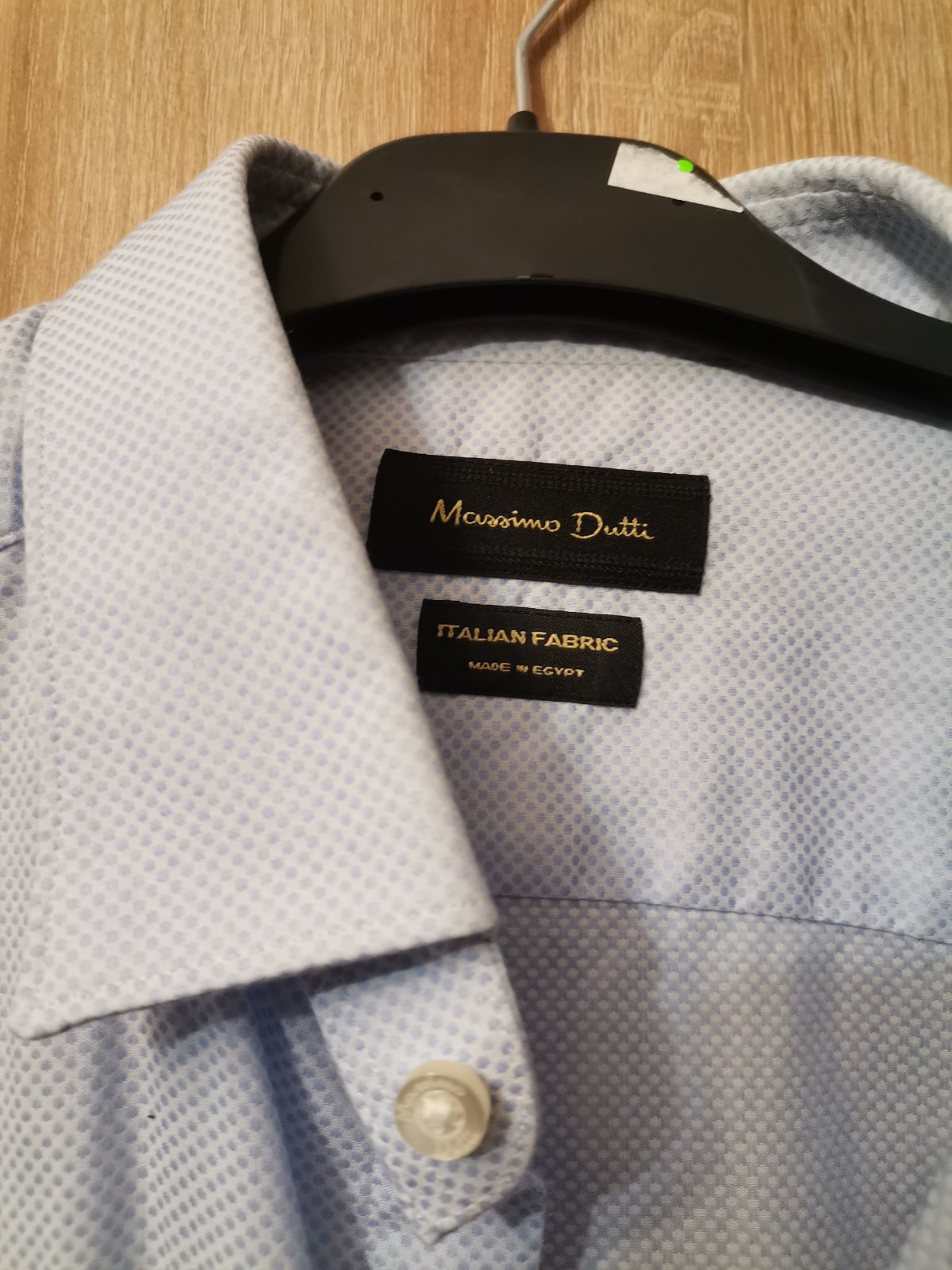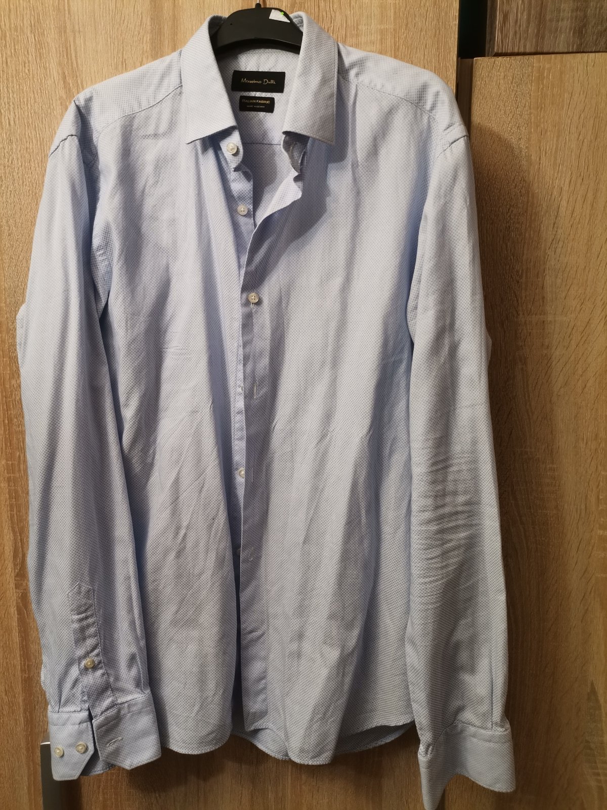 Svetlomodrá elegantná košeľa s jemným modrým vzorom, nosená, bez poškodení.