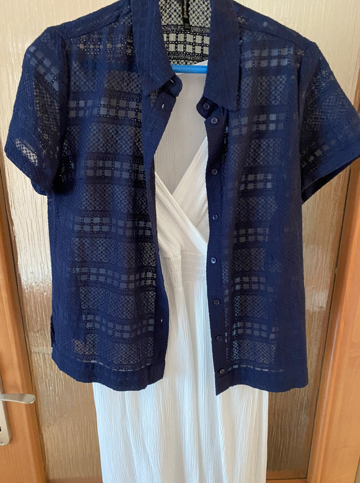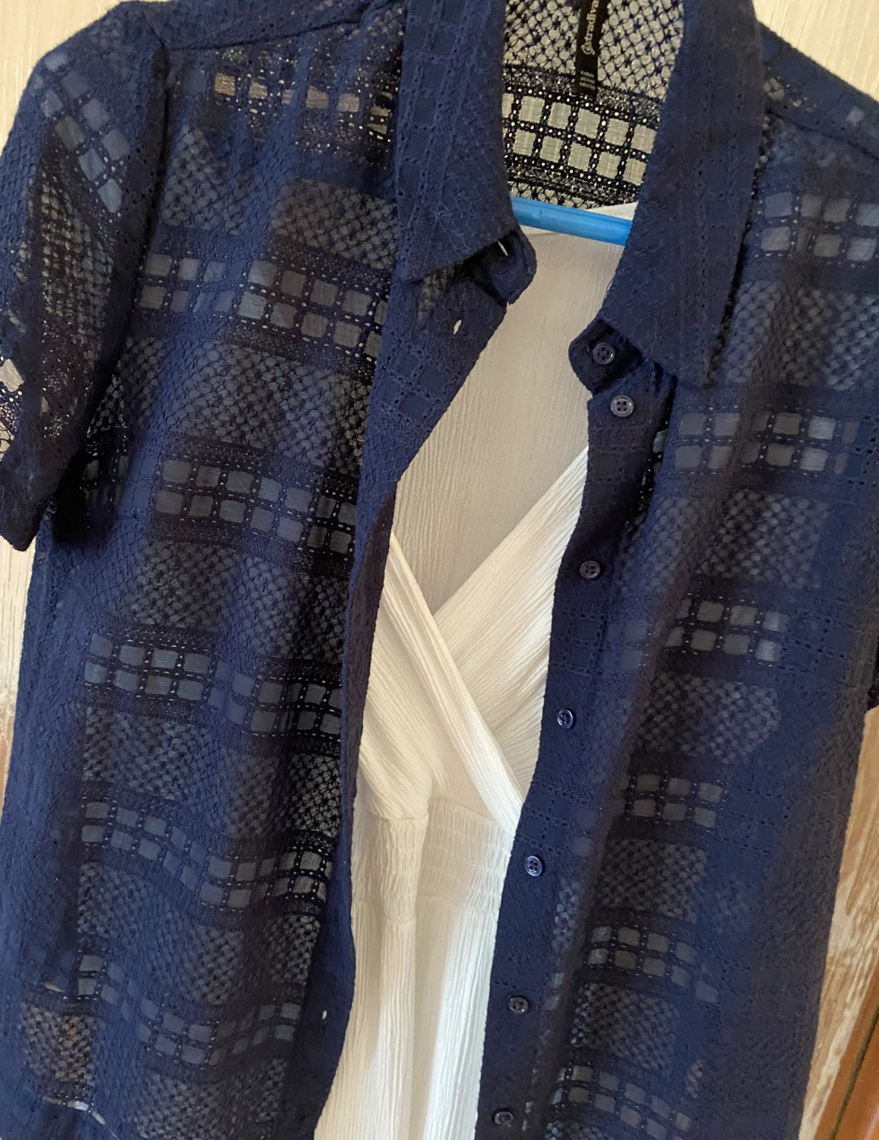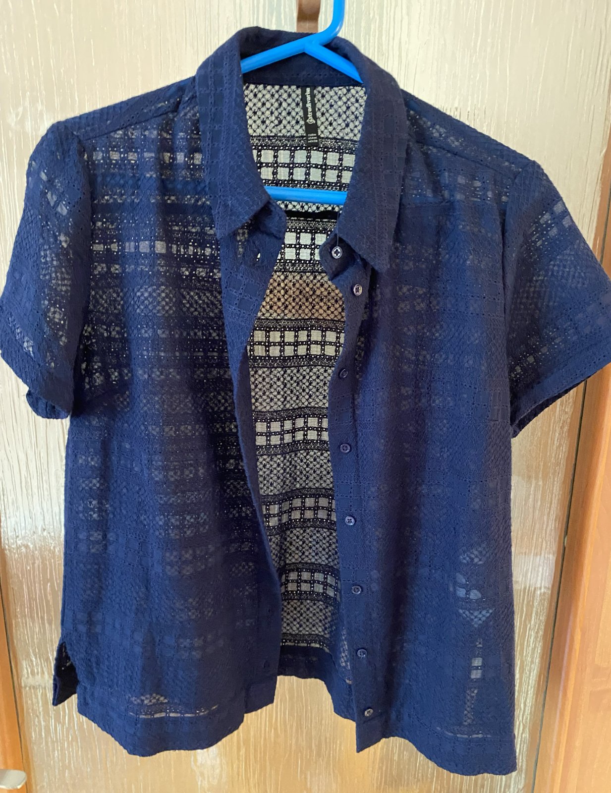Nenosená, iba opratá madeirová košeľa - blúzka Stradivarius, v. M, sýta tmavomodrá farba, veľmi pekná štruktúra látky, materiál bavlna + polyester. Miery: dĺžka od krku dolu: 57cm, šírka: 46cmx2.