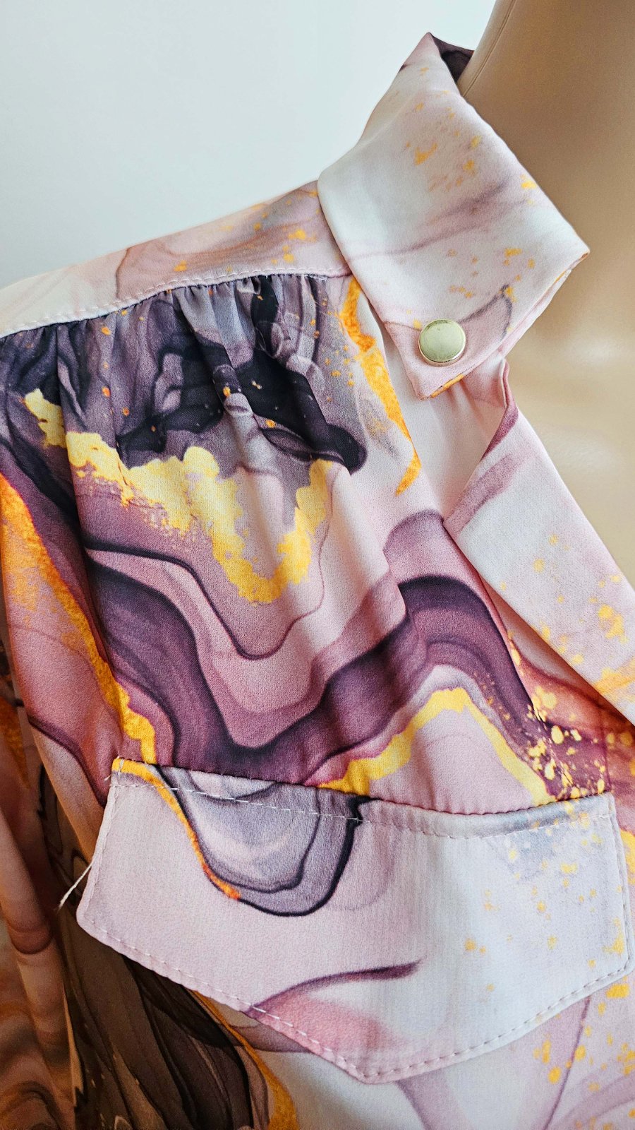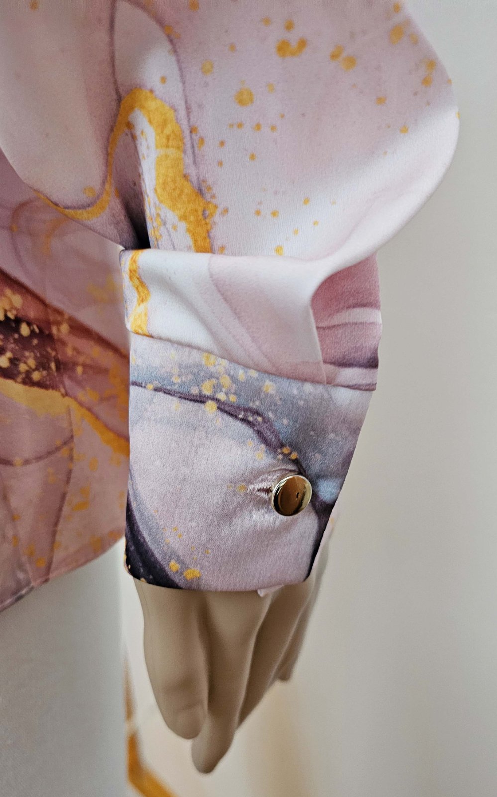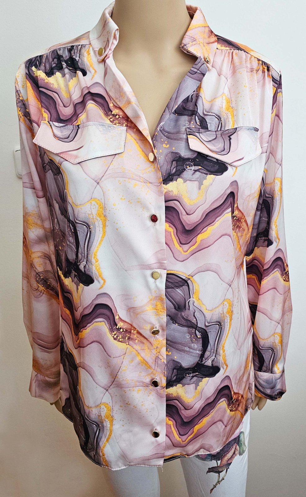 Takmer nová. Dĺžka predná 63 cm, šírka 57x2 cm. Jemný padavý materiál s leskom.