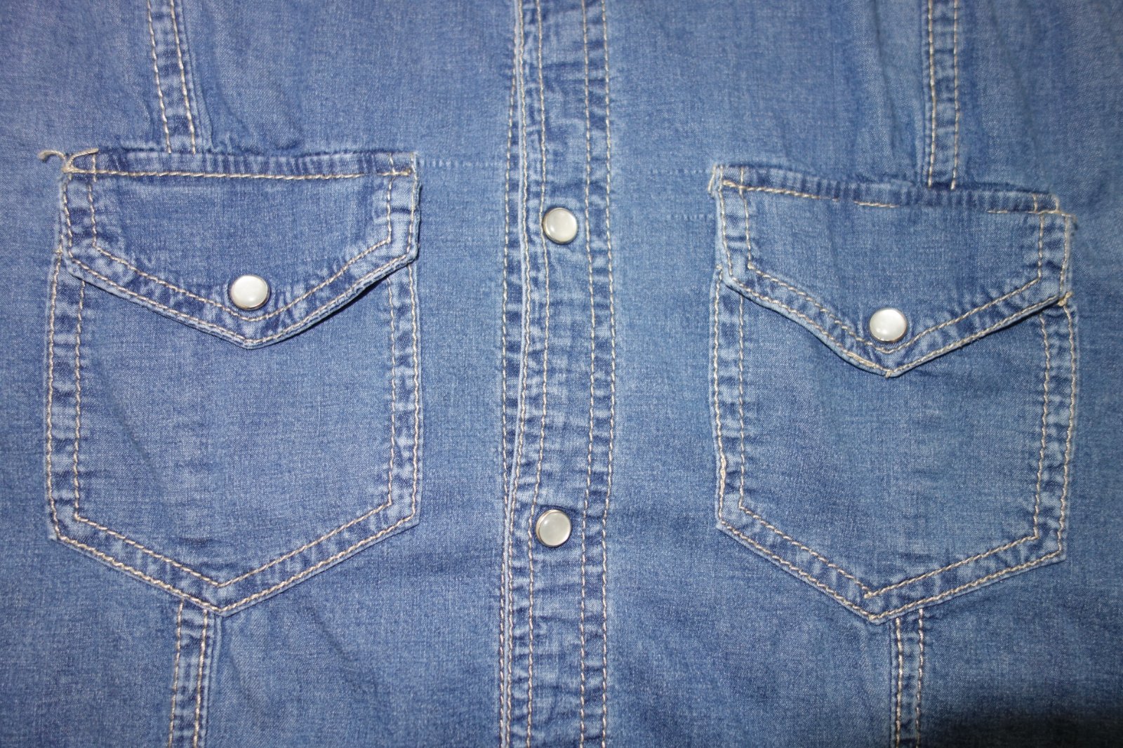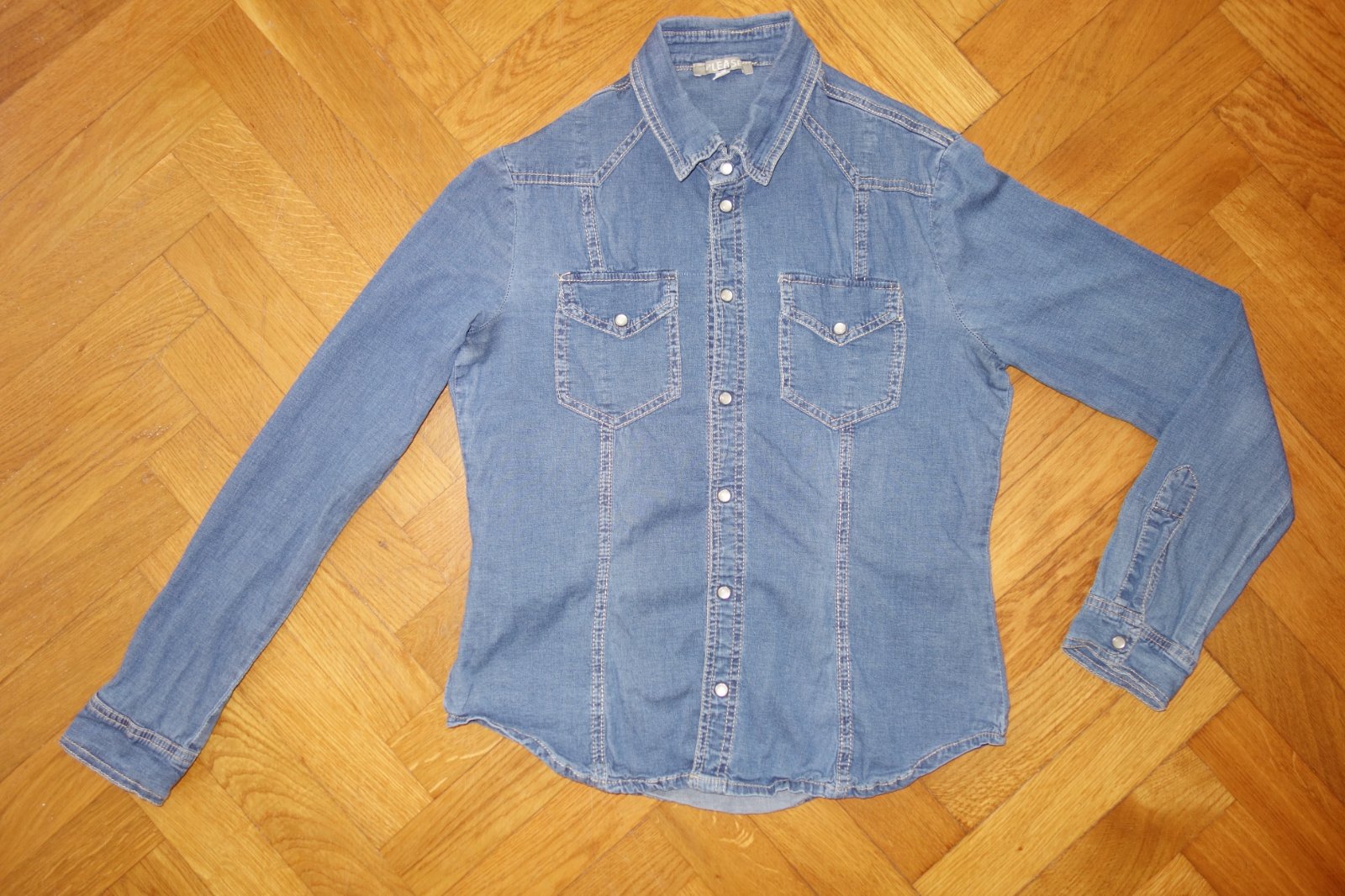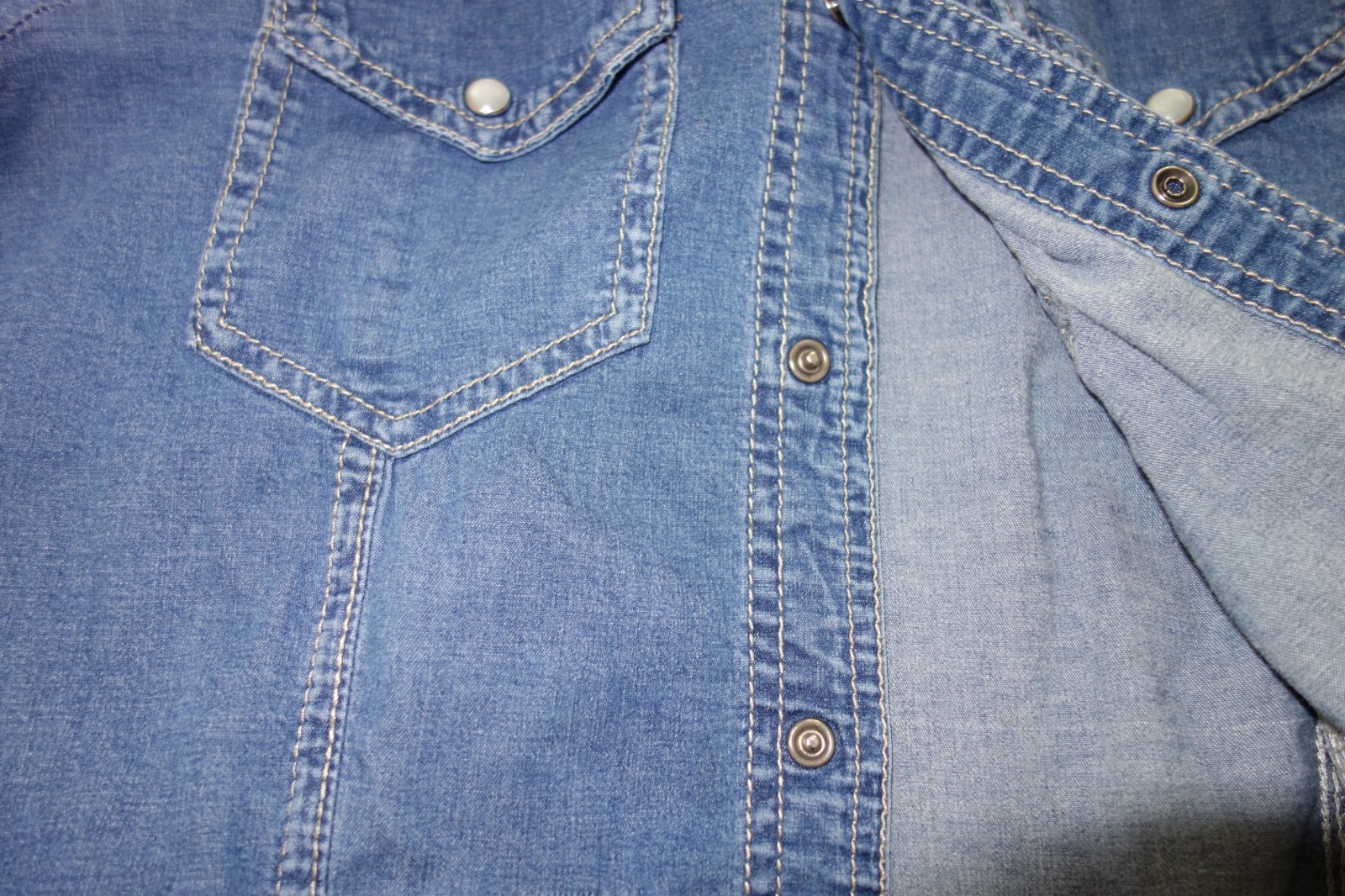 Veľmi dobrý stav. Zapínanie na perličkové cvoky. 98% bavlna, 2% elastan.