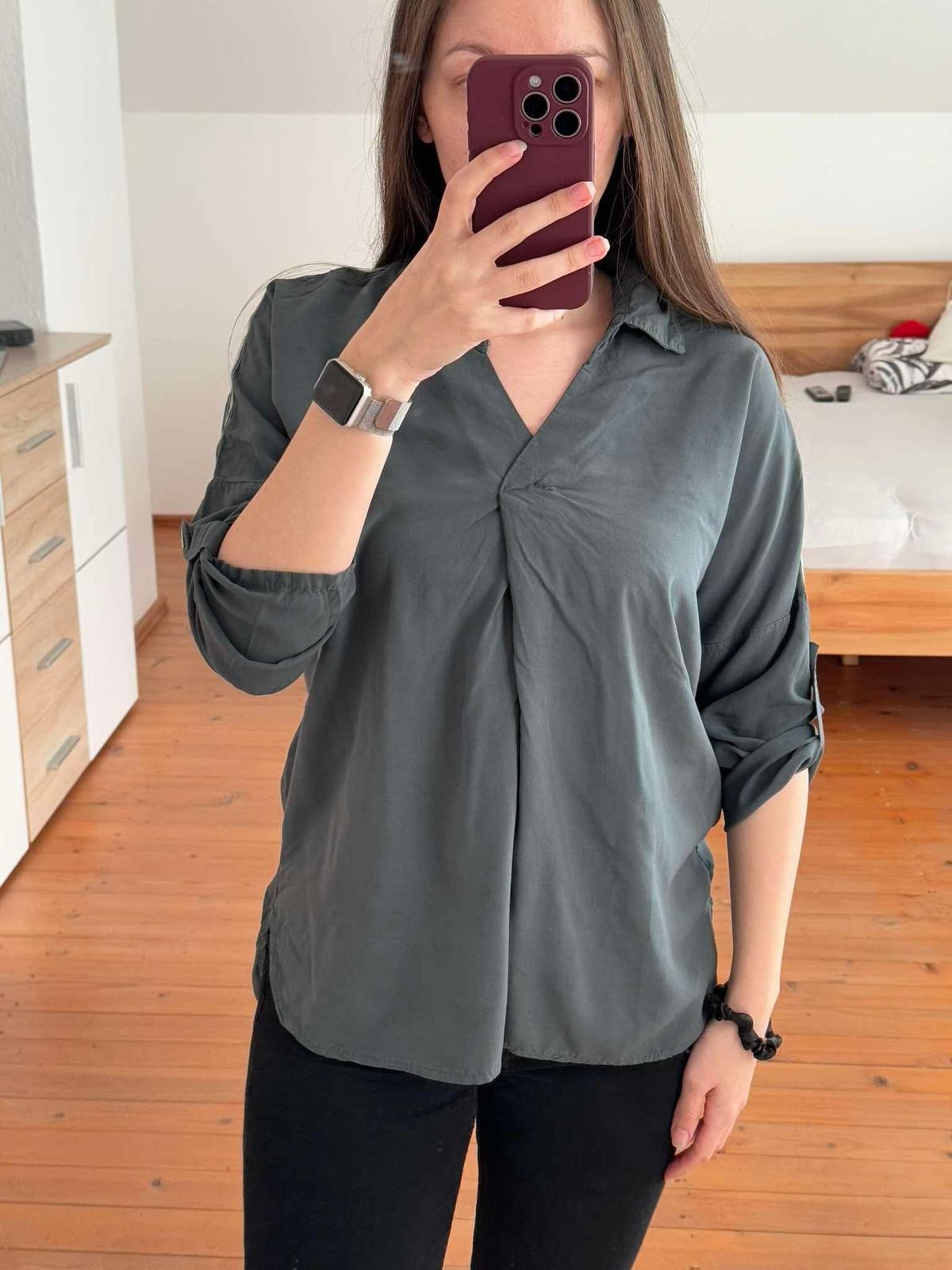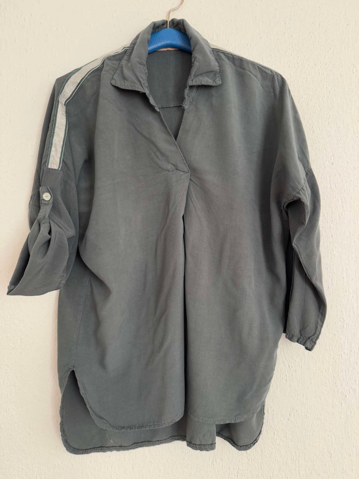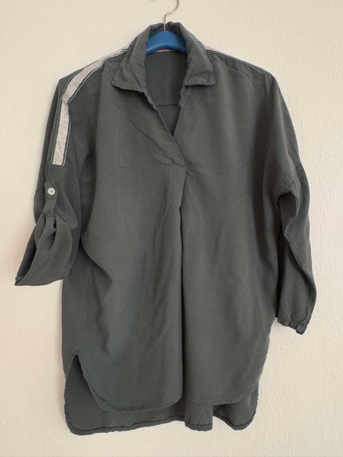 Jemná, vzdušná a voľná halenka cez hlavu, jemne priesvitná, na leto. Rukávy sa dajú ohrnúť, alebo spustiť. Šírka cca 62cm Dĺžka 68cm
