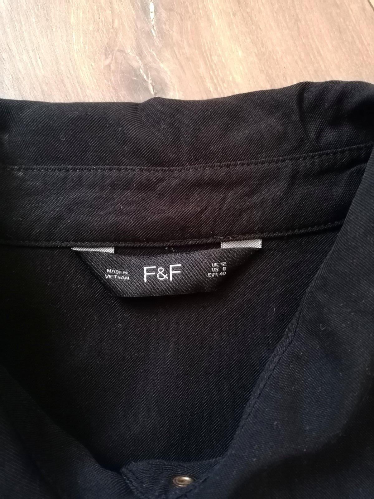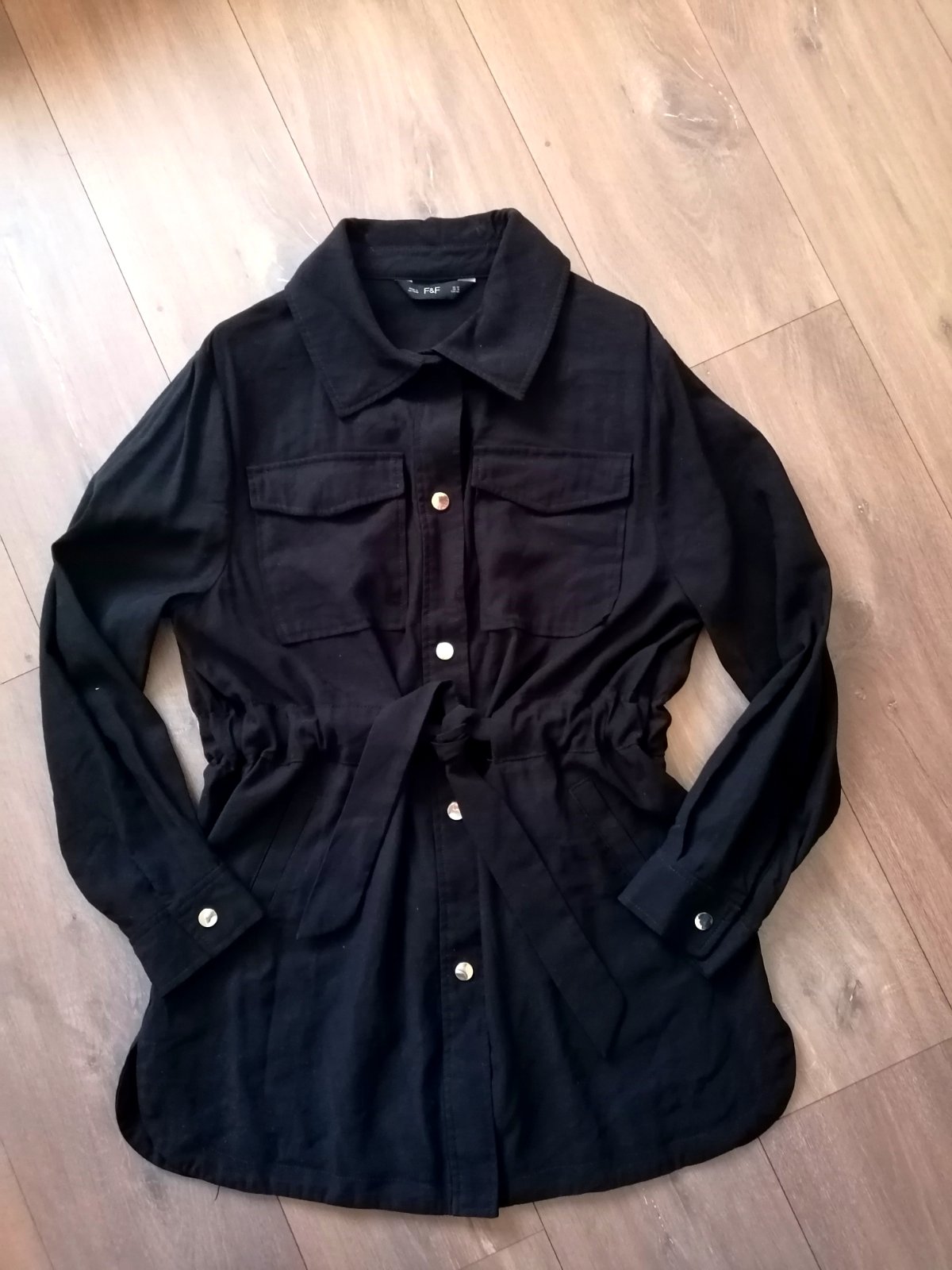 Pekná košeľa, pár x oblečená, nie je vyblednuta (na foto mi to zle zachytilo). V páse sa sťahuje ešte opaskom, pekne tvaruje postavu. Je to taka pevnejsia/hrubšia látka, nie klasická tenká koselovina. Dĺžka 79 cm, šírka v prsiach 46 cm.