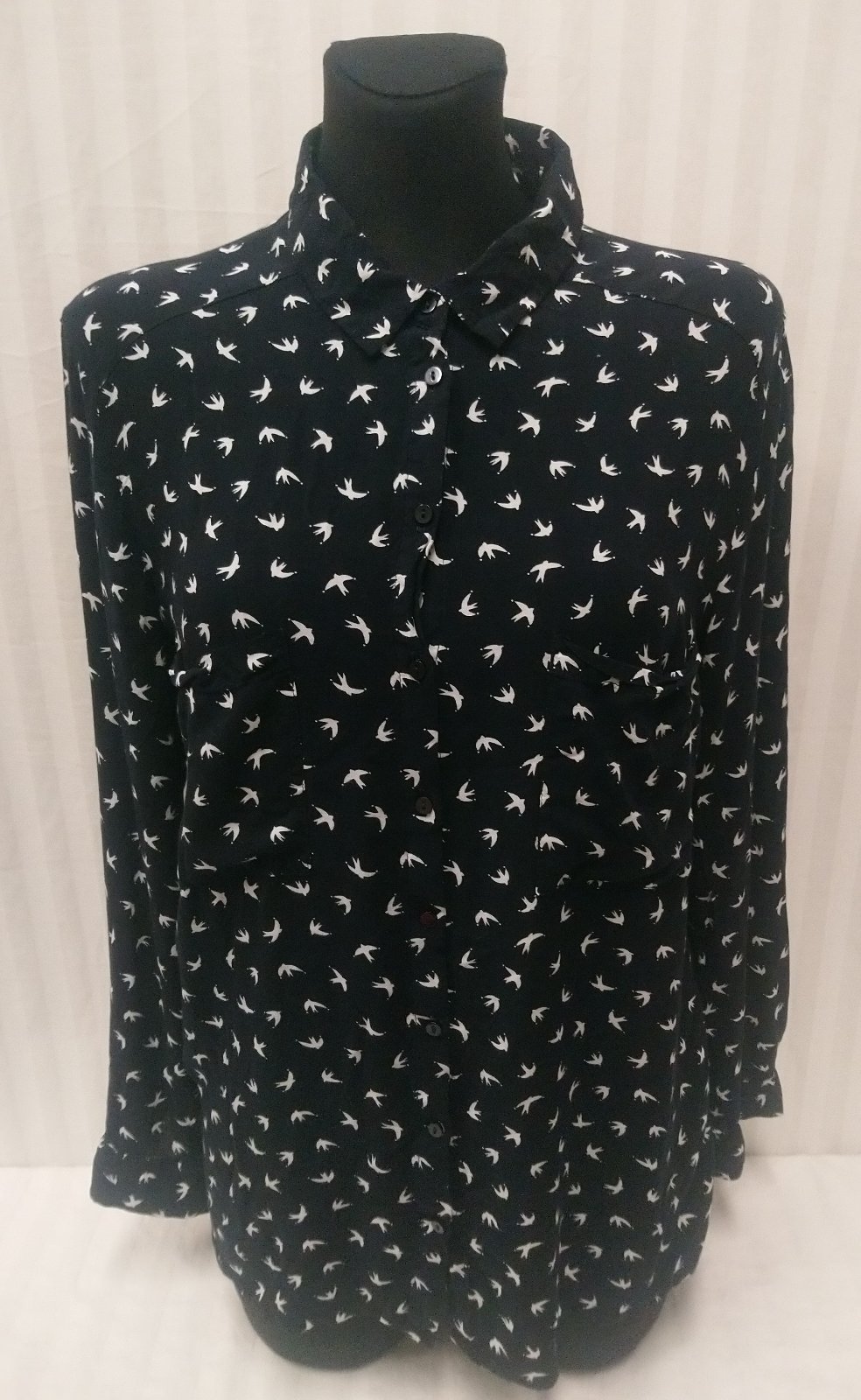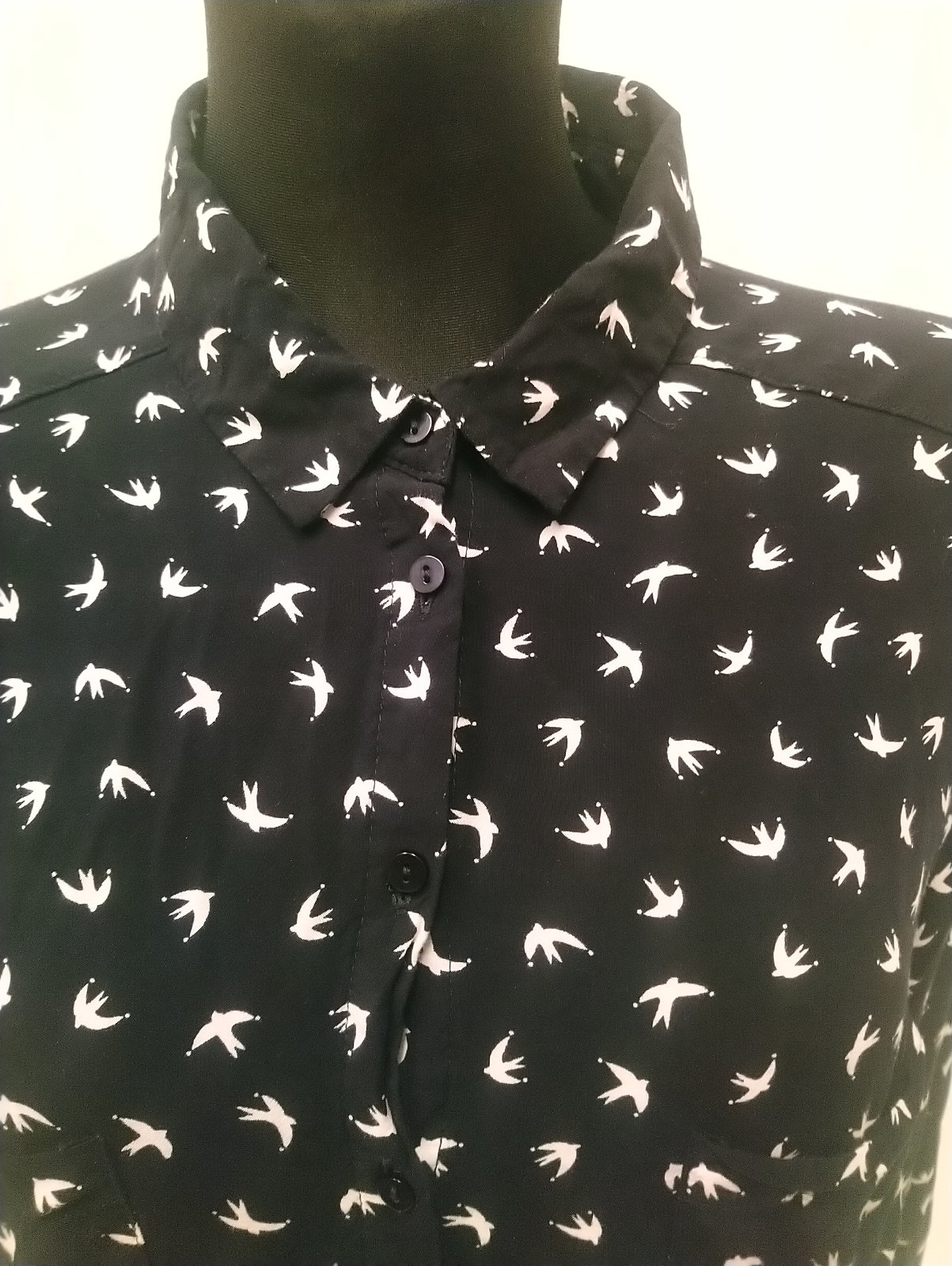 dámska čierna blúzka s bielym vzorom, náprsné vrecká,