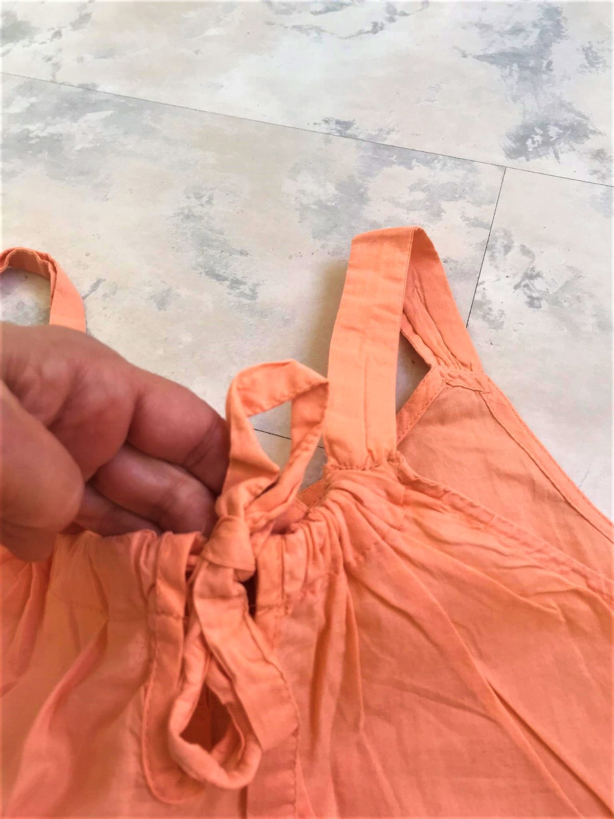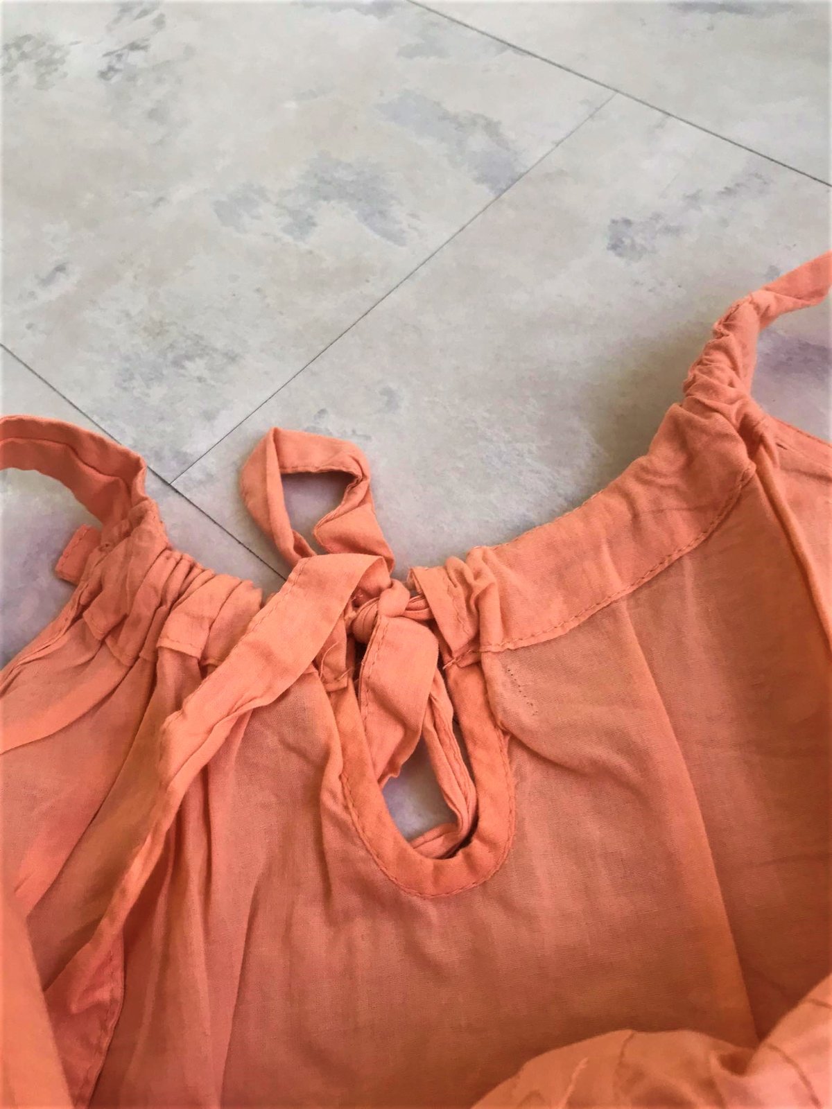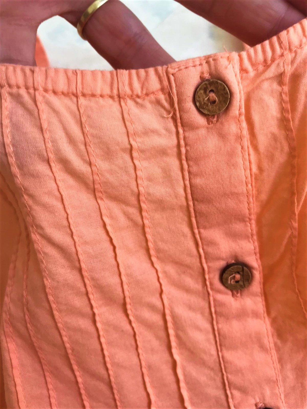 romantický plátenný vzdušný top v jemnej marhuľovo - lososovej farbe,jemná indická bavlna,voľný,vzdušný,vzadu slzička a možnosť uväzovania podľa potreby - aký veľký výstrih chcete,zakryje aj prípadné bruško,krásne detaily vpredu,jemnučké drevené gombíky