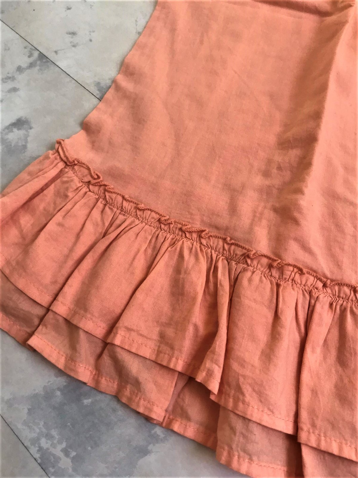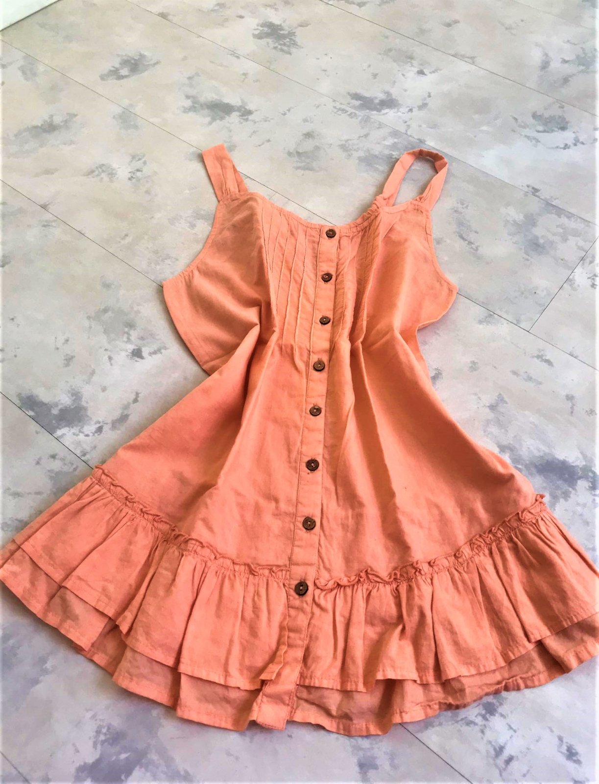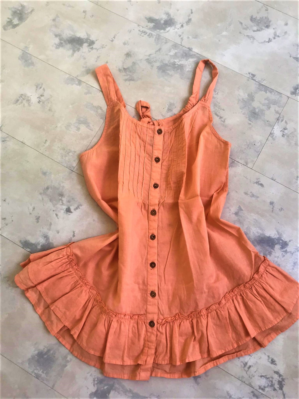 romantický plátenný vzdušný top v jemnej marhuľovo - lososovej farbe,jemná indická bavlna,voľný,vzdušný,vzadu slzička a možnosť uväzovania podľa potreby - aký veľký výstrih chcete,zakryje aj prípadné bruško,krásne detaily vpredu,jemnučké drevené gombíky