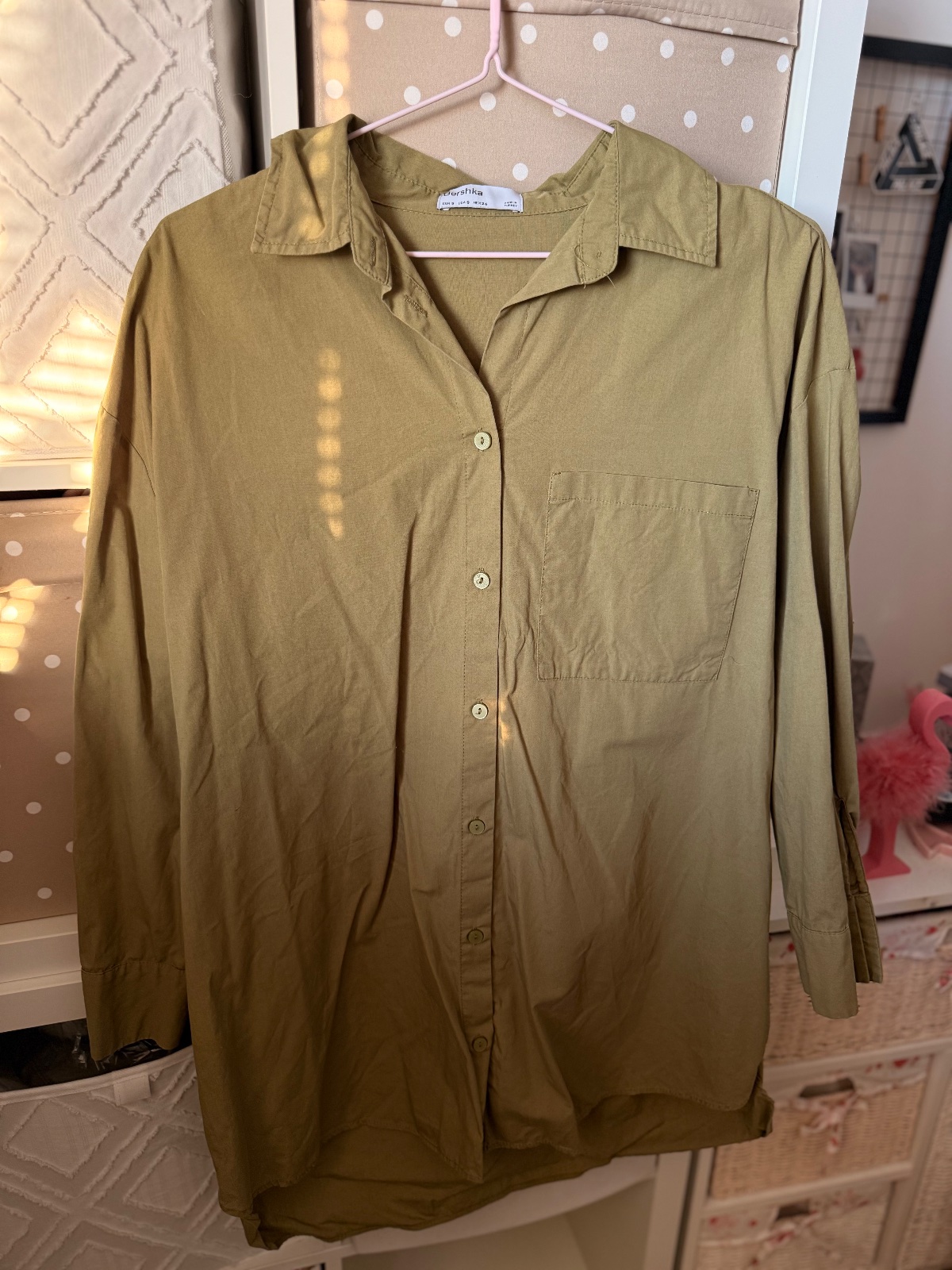 Blúzka Bershka, crop strih- skrátený, so zaväzovaním Velkost S Na prvom rukave dierka, vud foto, je ale zahrnuta, takze viditelna len zvnutra + sikovna zienka zasije, cena prisposobena Dlzka rukav ...