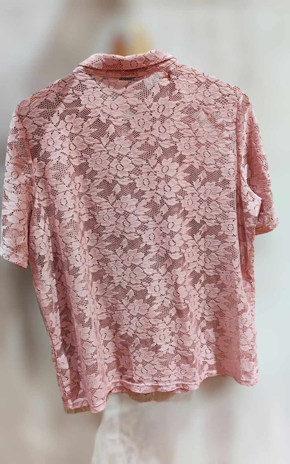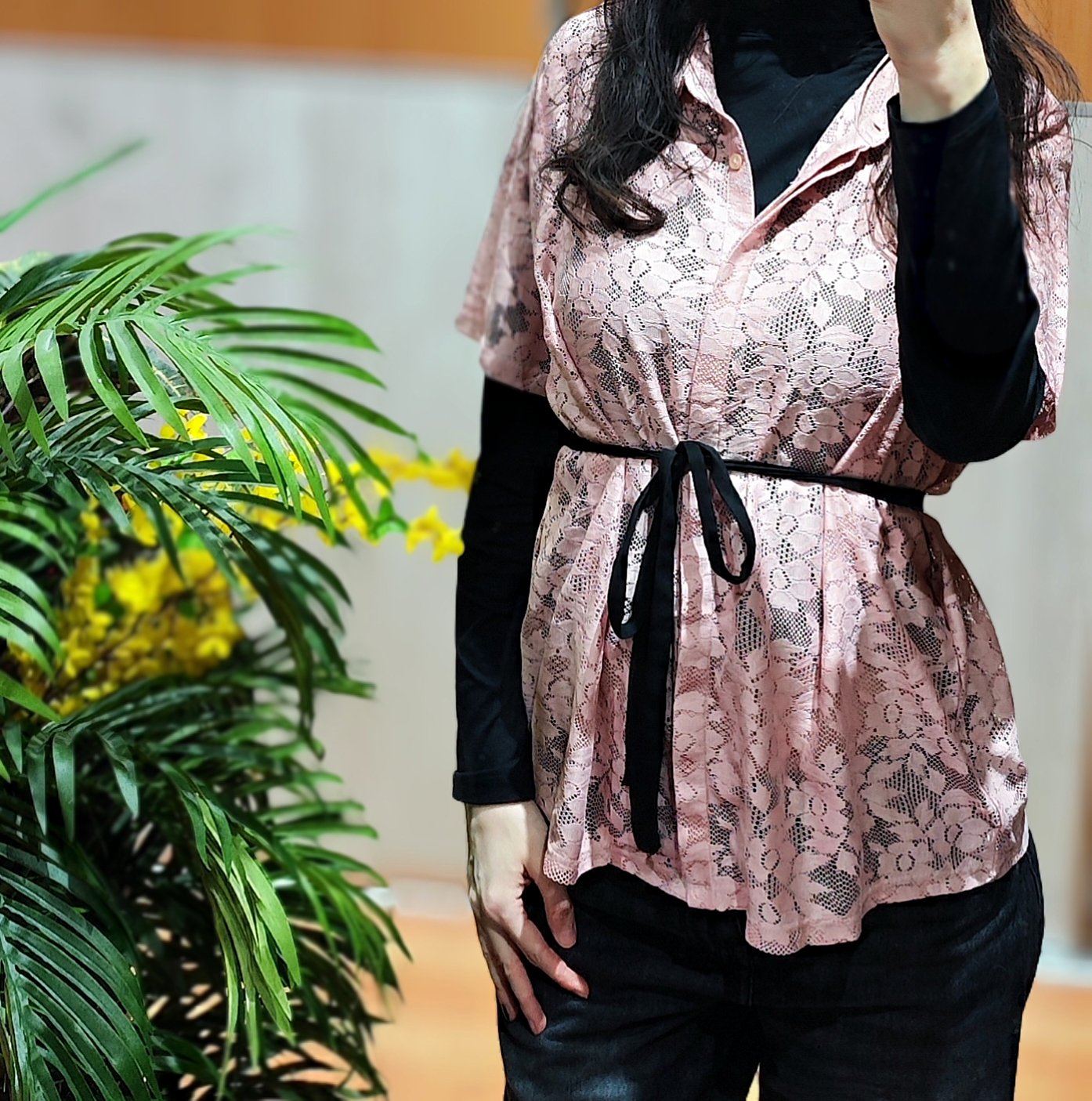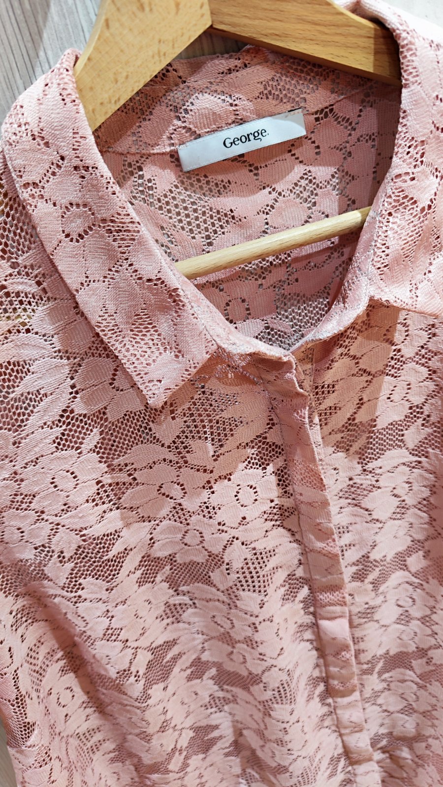 Čipkovaná blúzka značky George, v staroruzovej farbe, sedí na veľkosť M-L, je rovného strihu. Zapínanie na gombíky. Opasok je len ilustračný.