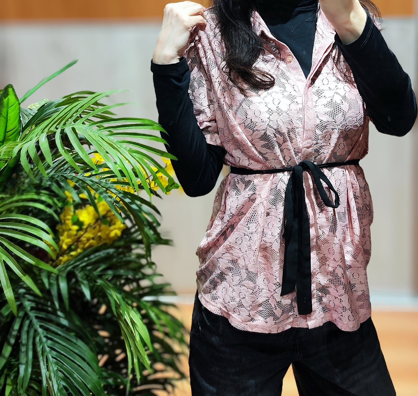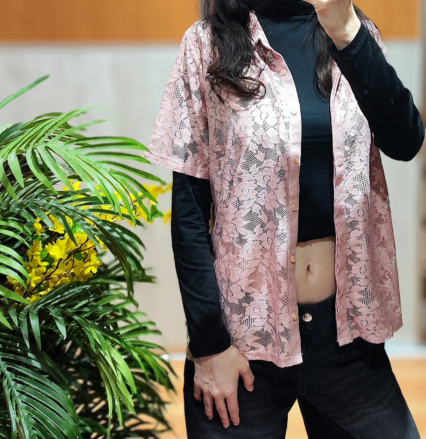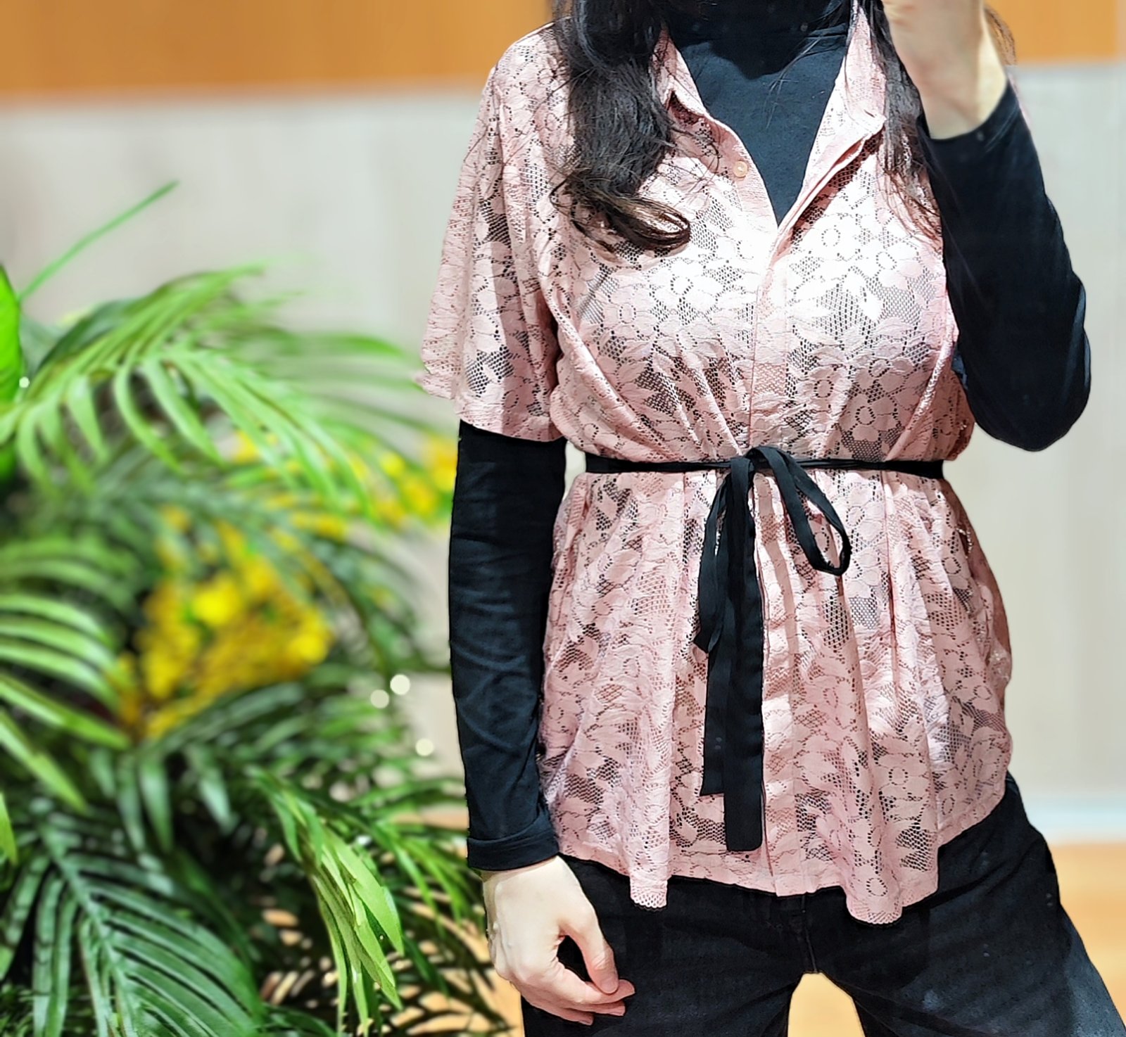 Čipkovaná blúzka značky George, v staroruzovej farbe, sedí na veľkosť M-L, je rovného strihu. Zapínanie na gombíky. Opasok je len ilustračný.