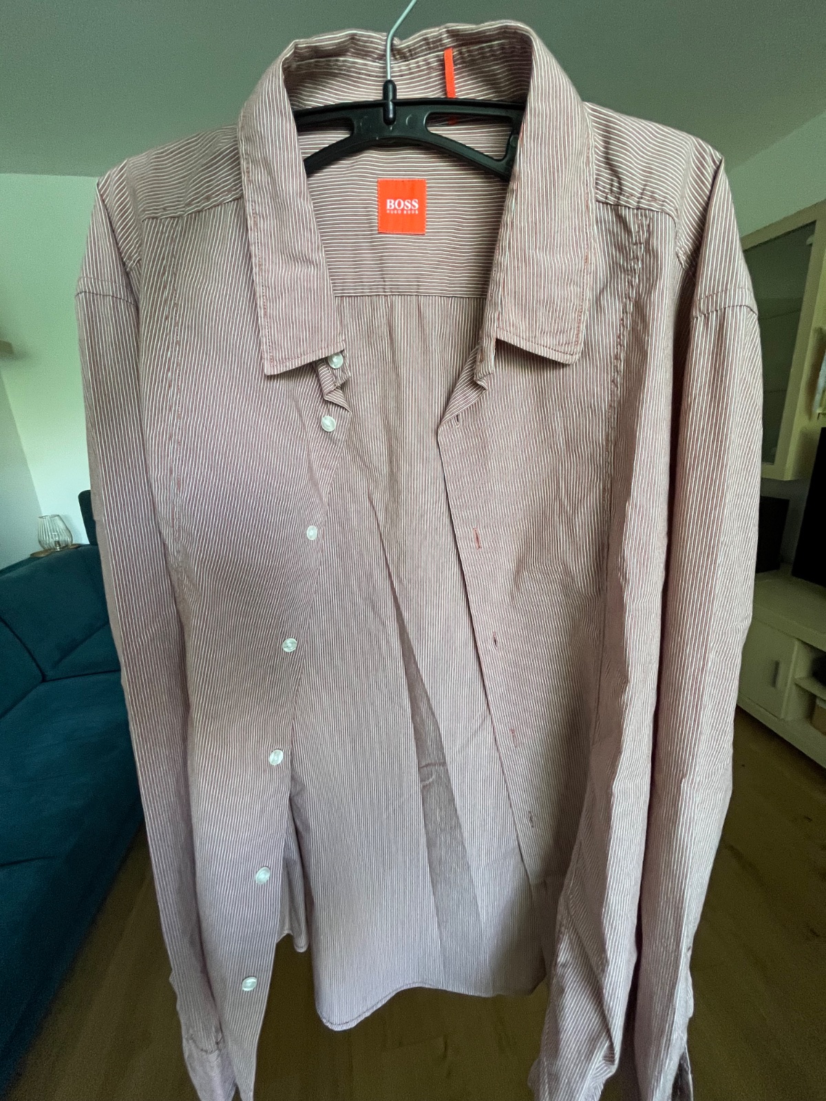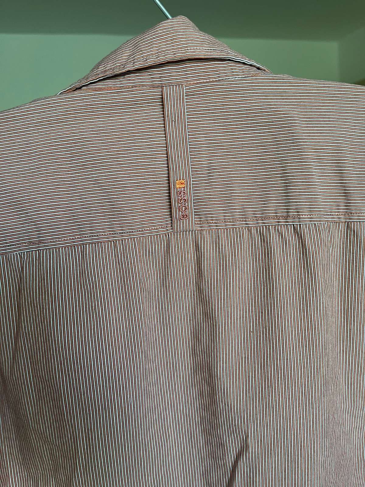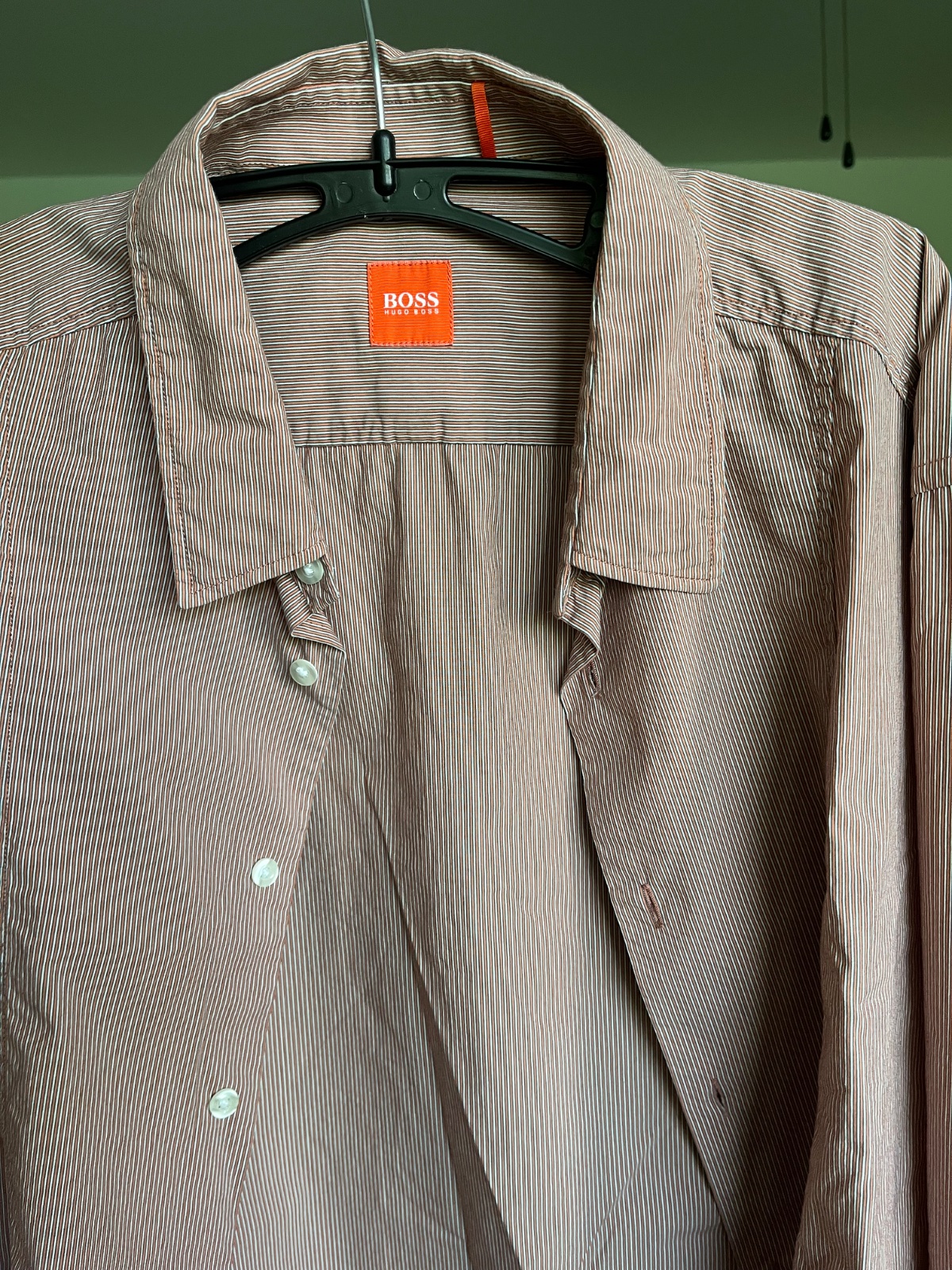 Ponúkam na predaj veľmi peknú pánsku košeľu s oranžovými pásikmi málo nosenú.