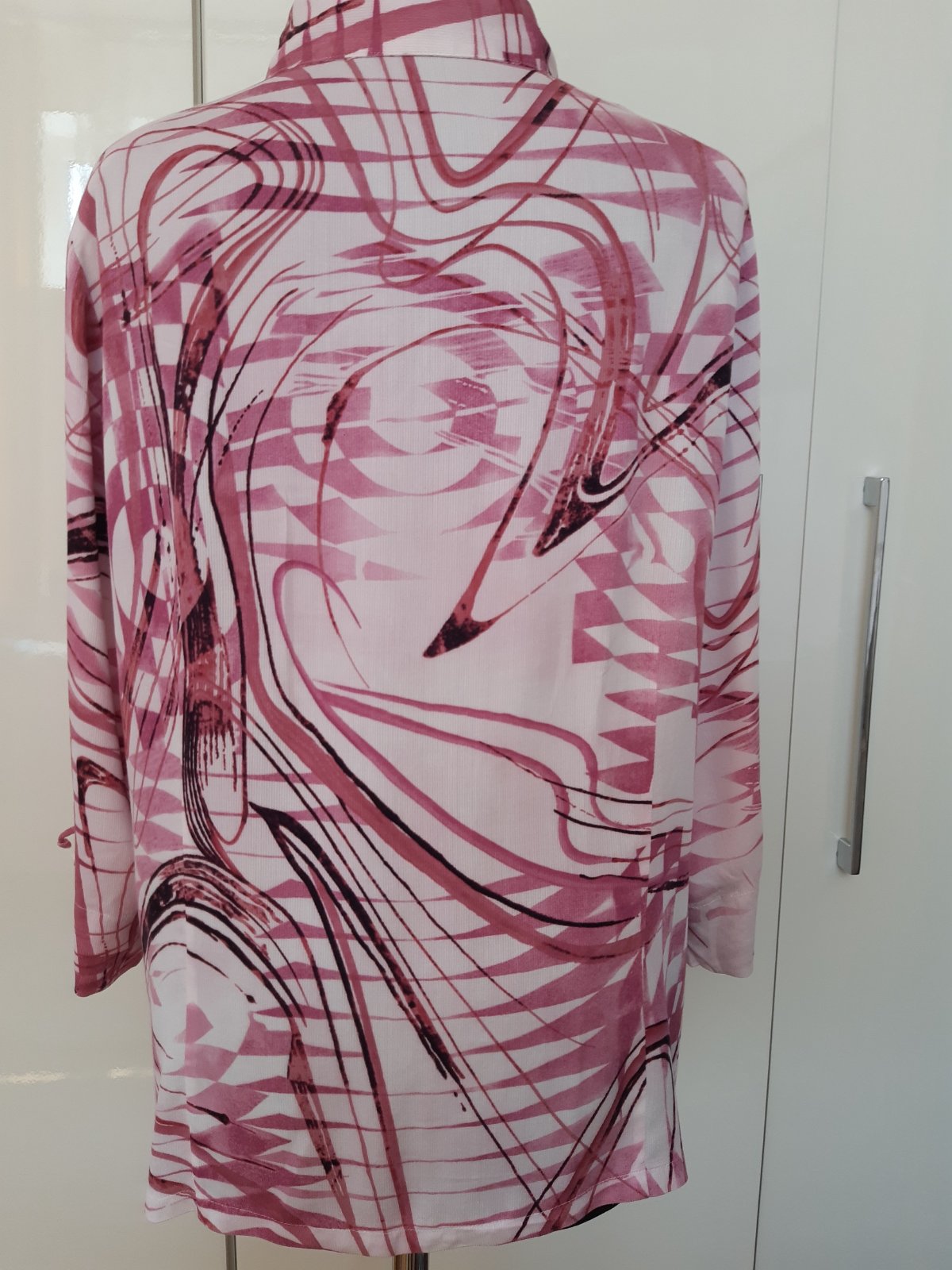 Súper blúzka, pekná, dobrá. Dl. 70 cm, šírka 58x2 cm, dl. 3/4rukáva 48 cm. Materiál je perfektný, príjemný, mäkký, kvalitný-100% viskóza. Blúzka bola málo nosená, lebo už nesedí veľkosť.
