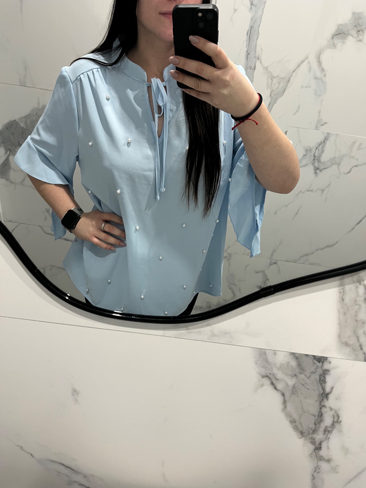 Krásna blúzka v modrej farbe s perličkami