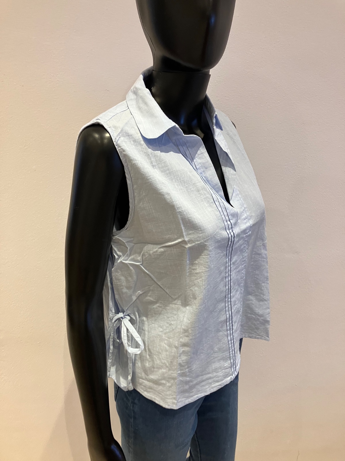 Dámska,dievčenská košeľa bez rukávov a s golierom, véčkový výstrih, jemne elastická.