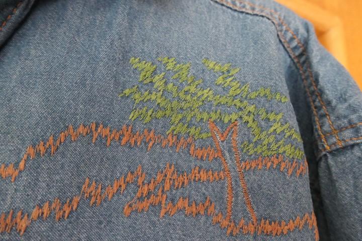 jedinecny a originalny kusok, makucka riflova kosela, volnejsieho strihu s nasivanymi medvedikmi, vysivky, nasivky, detailne vypracovana, dovoz z USA, PC velmi vysoka, velkost Lko aj sedi