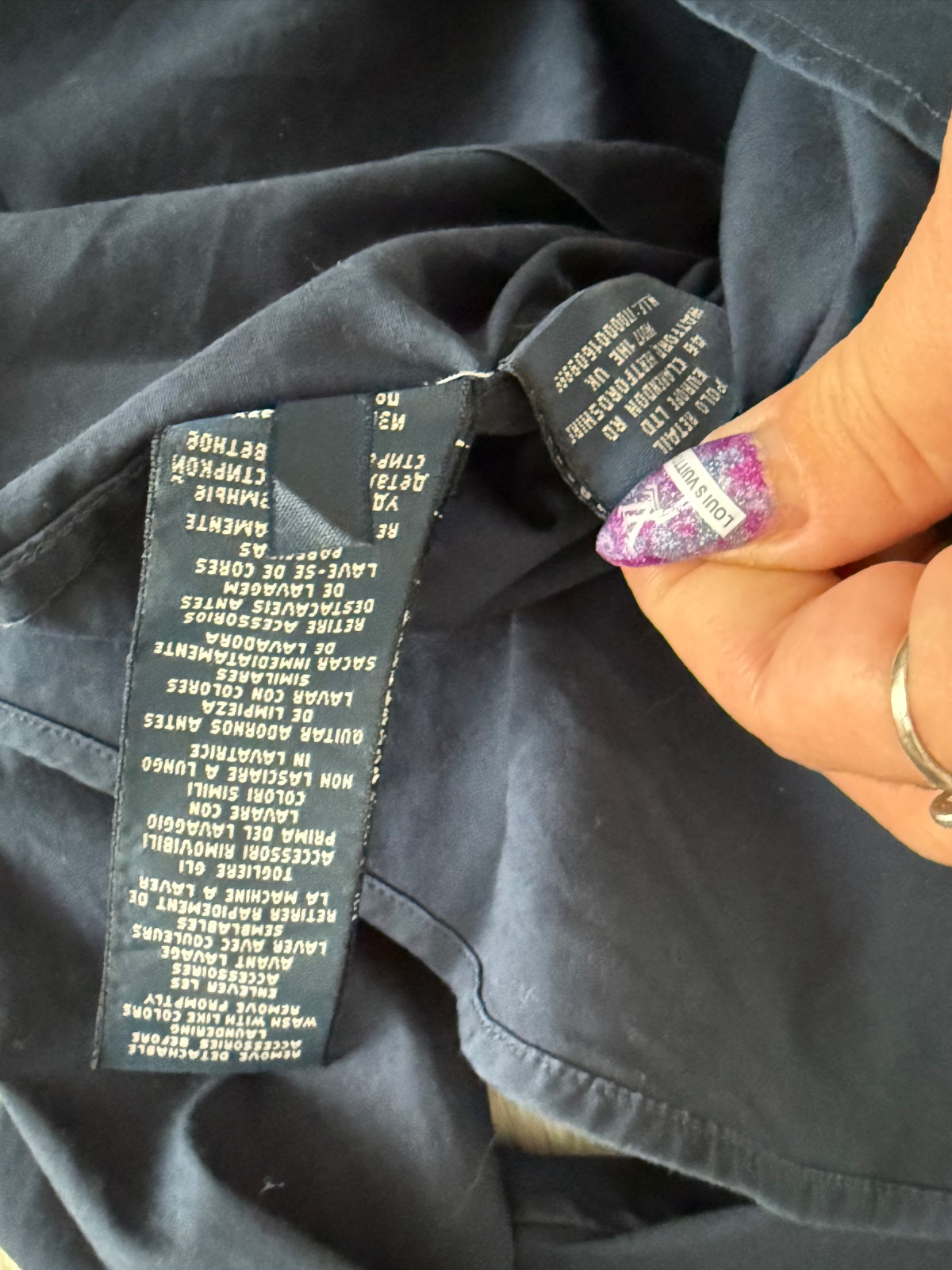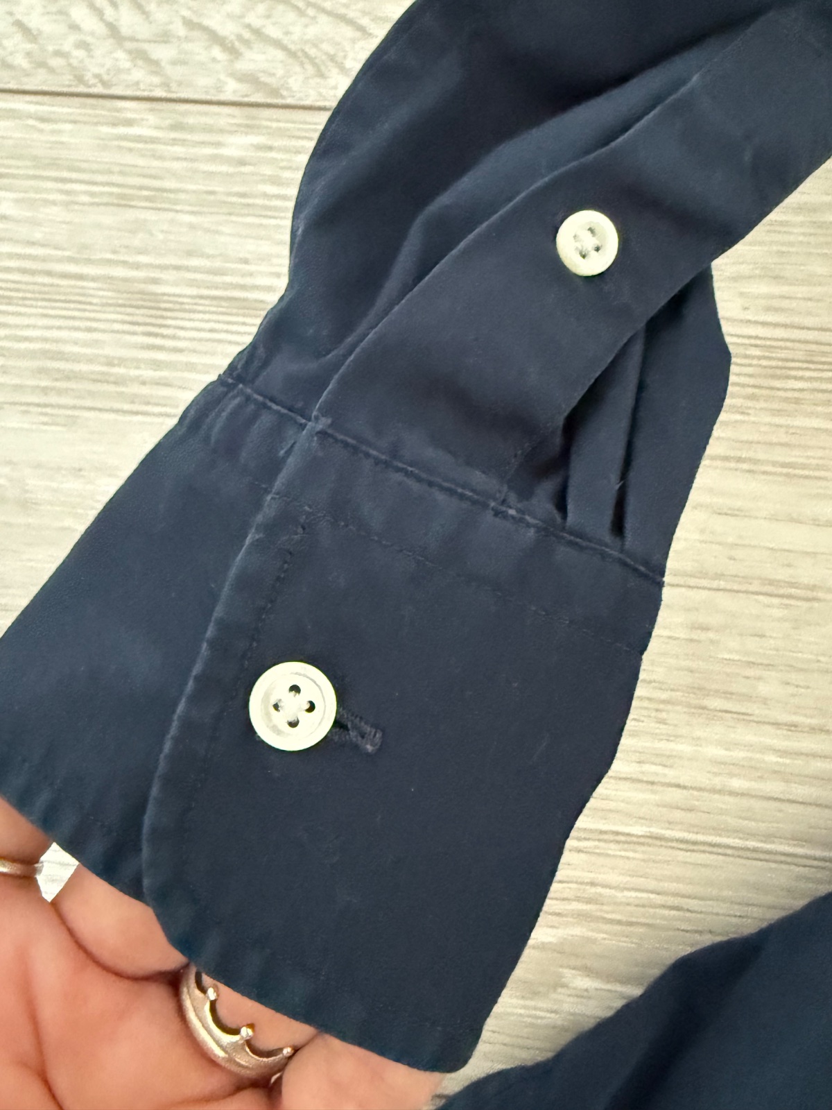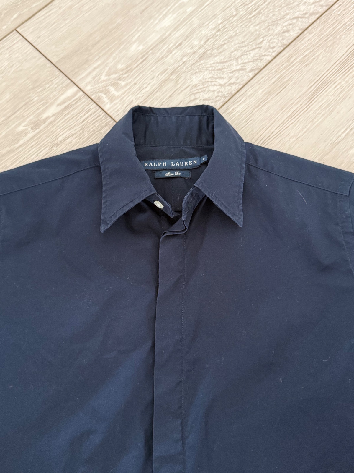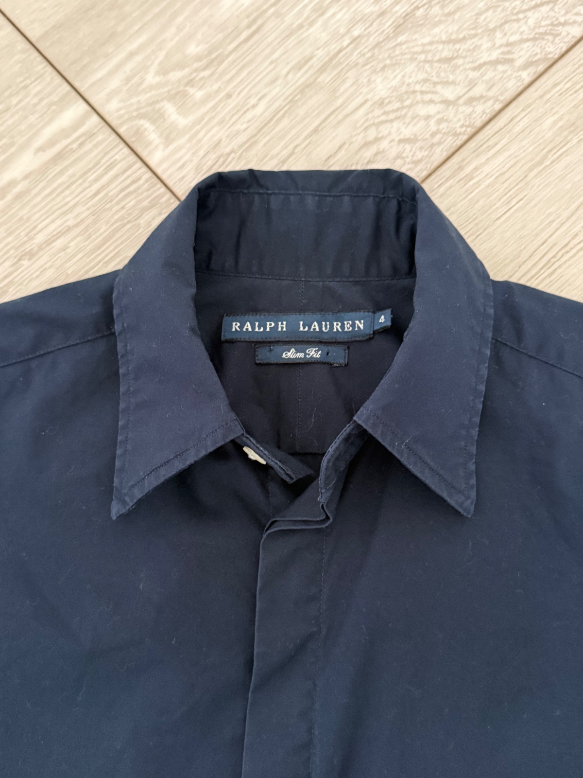 Úžasná tmavomodra pánska košeľa Ralph Lauren. Slim fit strih, sedí perfektne. Biele logo vyšité na pravom rukáve, skryté gombíky. Velkosť 4, sedí S-M. Nosená, bez poškodenia. Miery: šírka prsia-47, dĺžka stredom cez chrbát 64 cm.