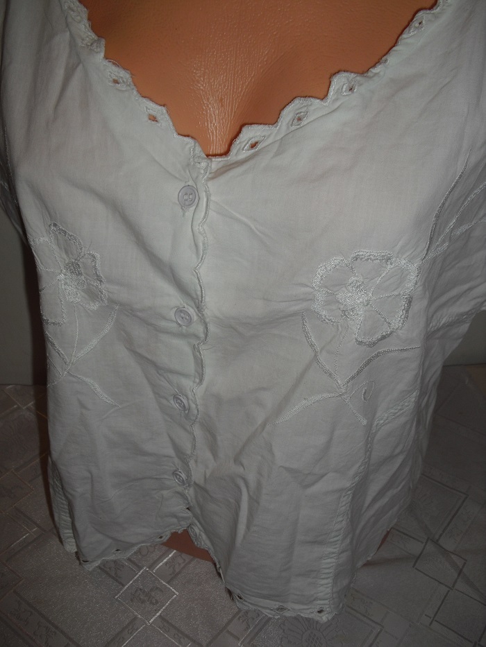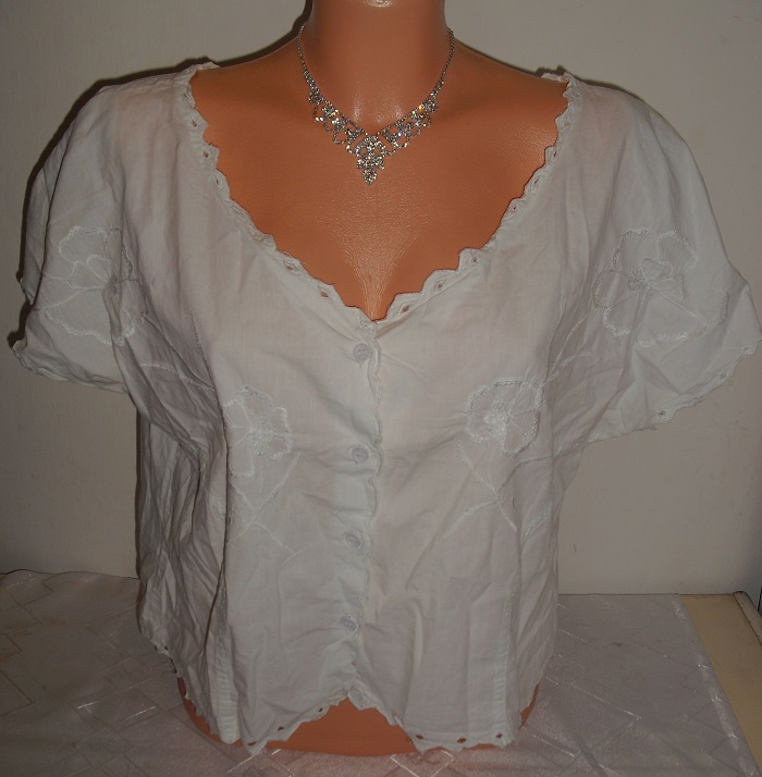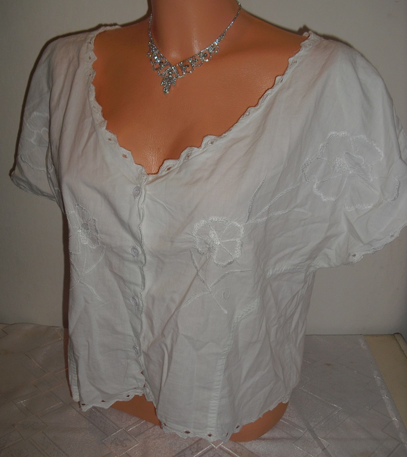 predam bielo kremikovu nadhernu bluzocku, vysivana, vhodna ku kroju krojova, velkost uvedena l, detailne prepracovana, na predu na gombicky zapinanie. sirka 58 cm x 2, dlzka 50 cm.