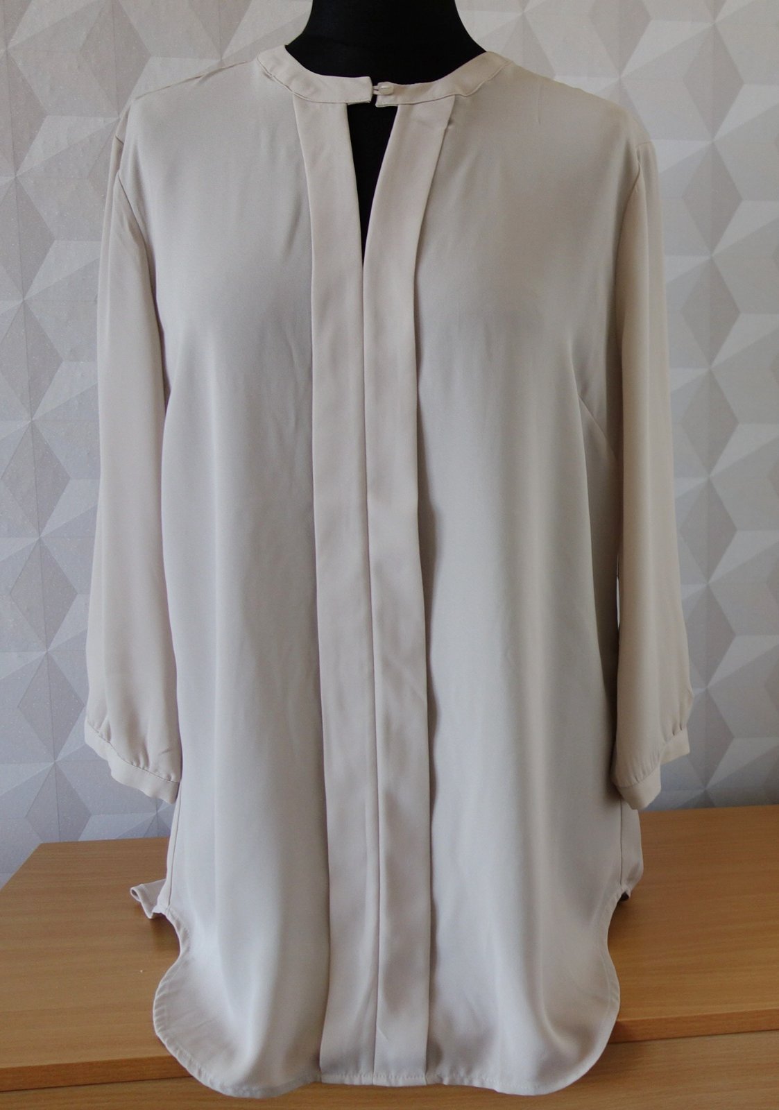 Šifónová blúzka značky 17&co., Veľkosť M, sedí aj na L, rozmery: dĺžka predného dielu je 72cm, zadný má 80cm, pod pazuchami 2x54cm, rukáv je 3/4 dlžky - 47/31cm.