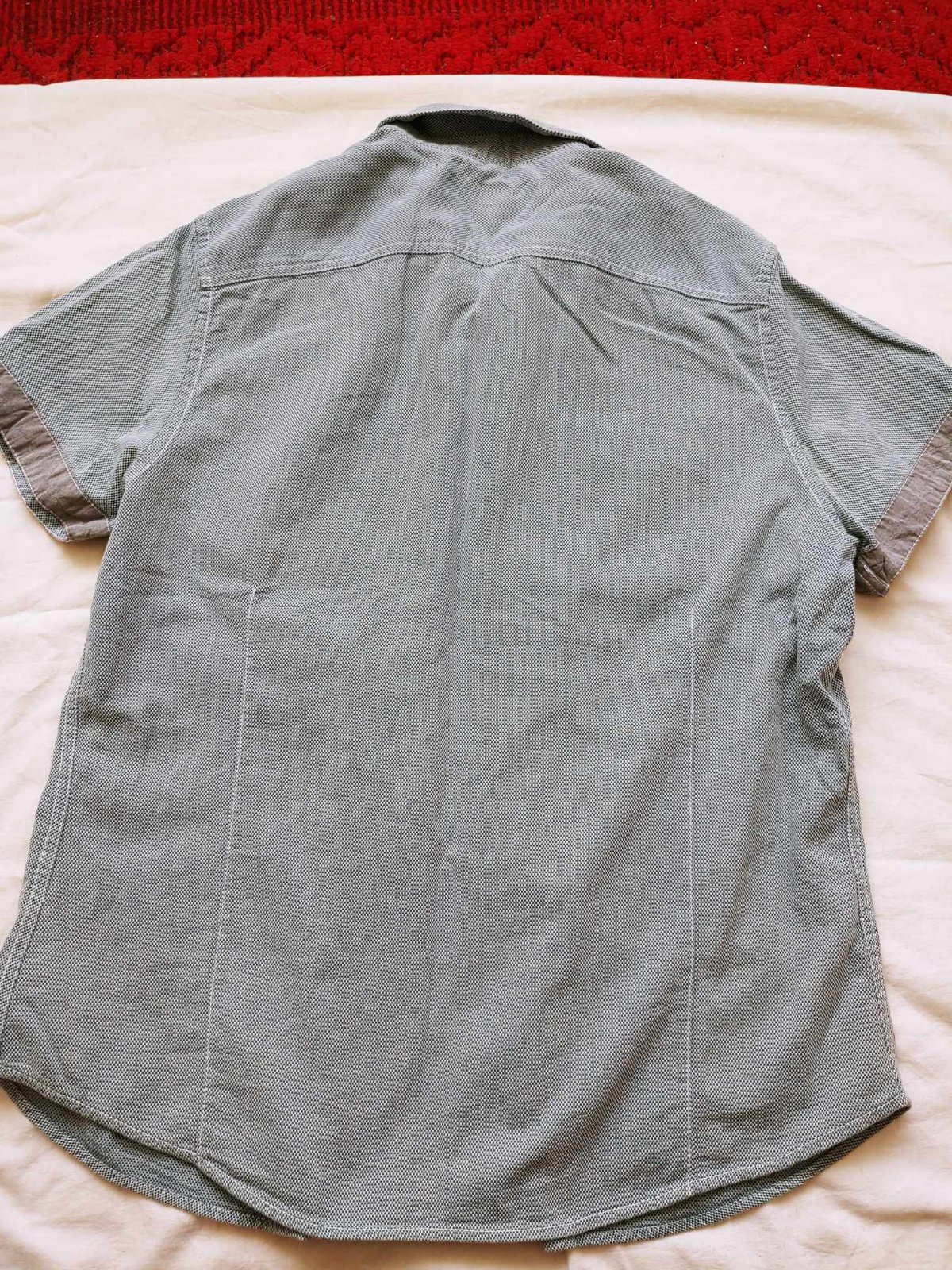 Košeľa je v top stave, ako nová. Spodok mierne zaoblený. Vpredu hore 1 vačok. Zloženie: 55% bavlna+ 45 % polyester D- 75 cm ŠvPP- 59x2 cm