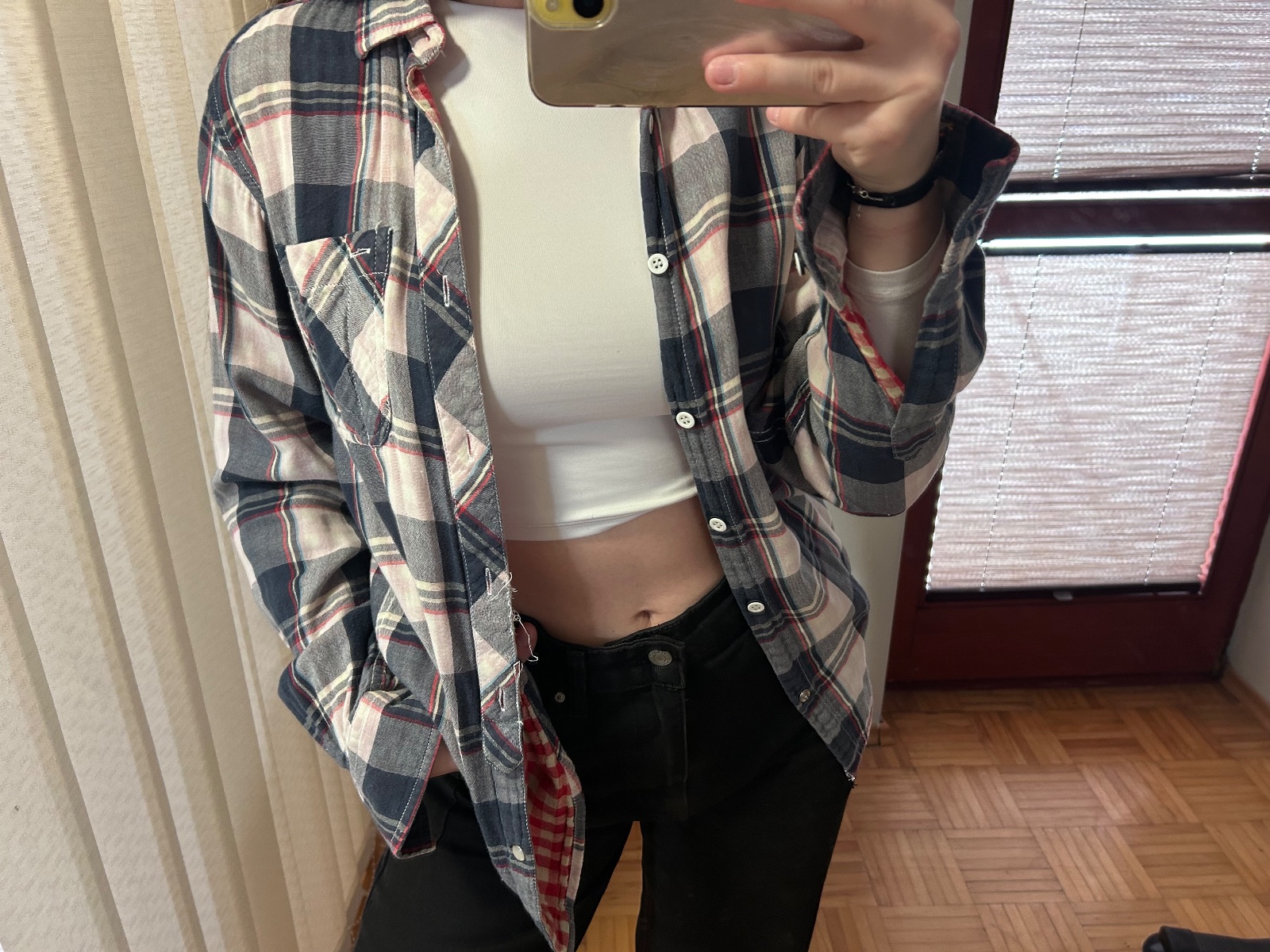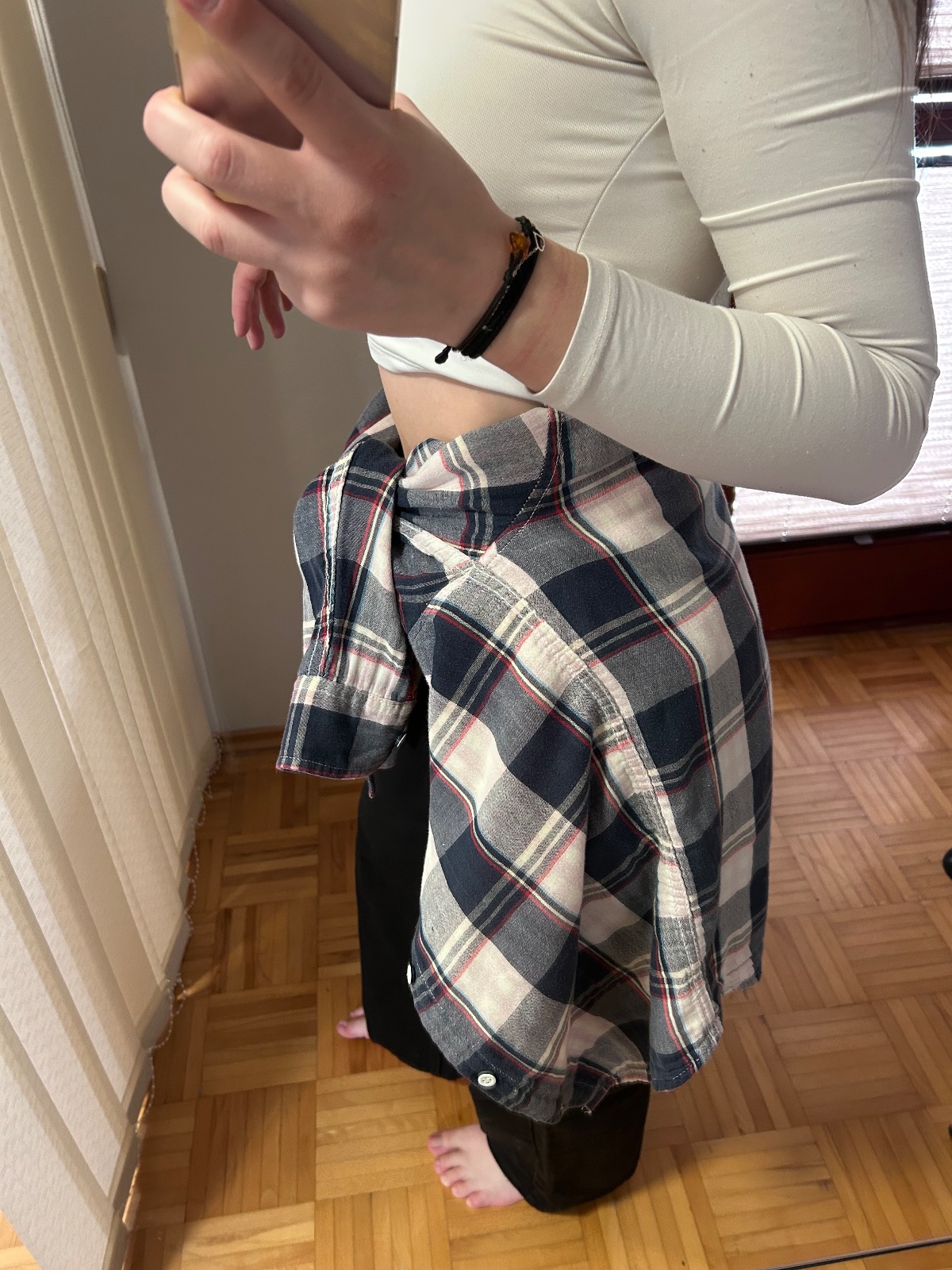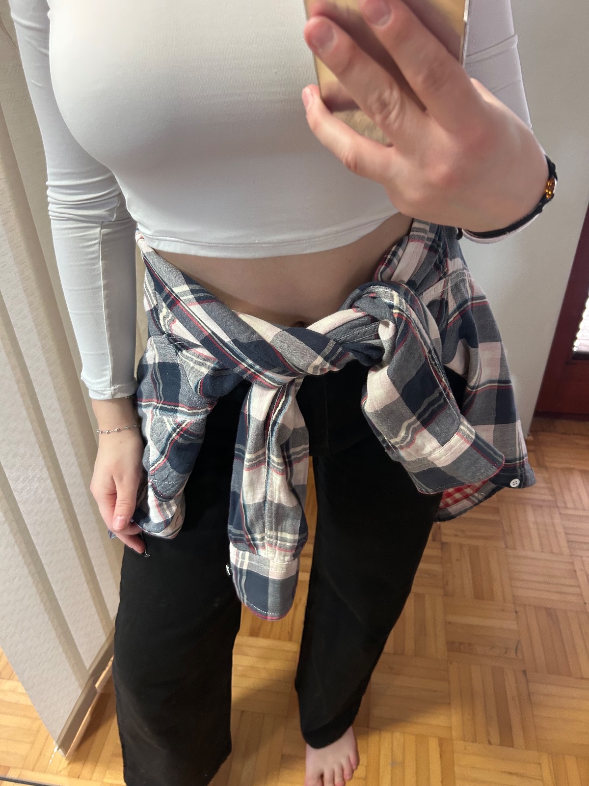 Strecova košeľa, mala som ju 2x. Pekne obopne postavu. Veľmi dobre drží zakasana.