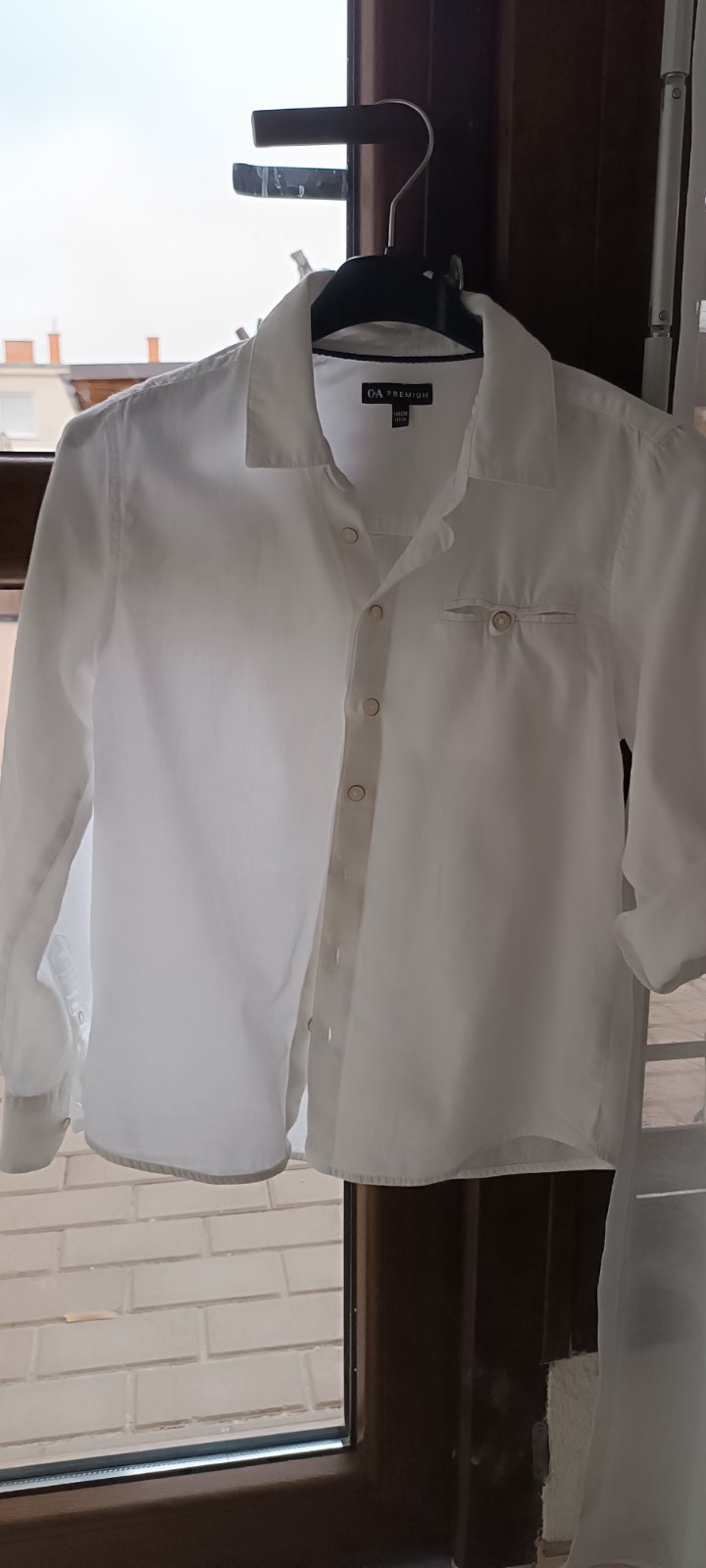 Predám bielu košeľu s dlhým rukávom. Na gombíky. Na ľavej strane hore vyšitý jeleň. V top stave. Bez poškodenia. Zloženie: 100% bavlna Značka: C & A Veľkosť: 146/152 Farba: biela Dĺžka košele: 62 ...