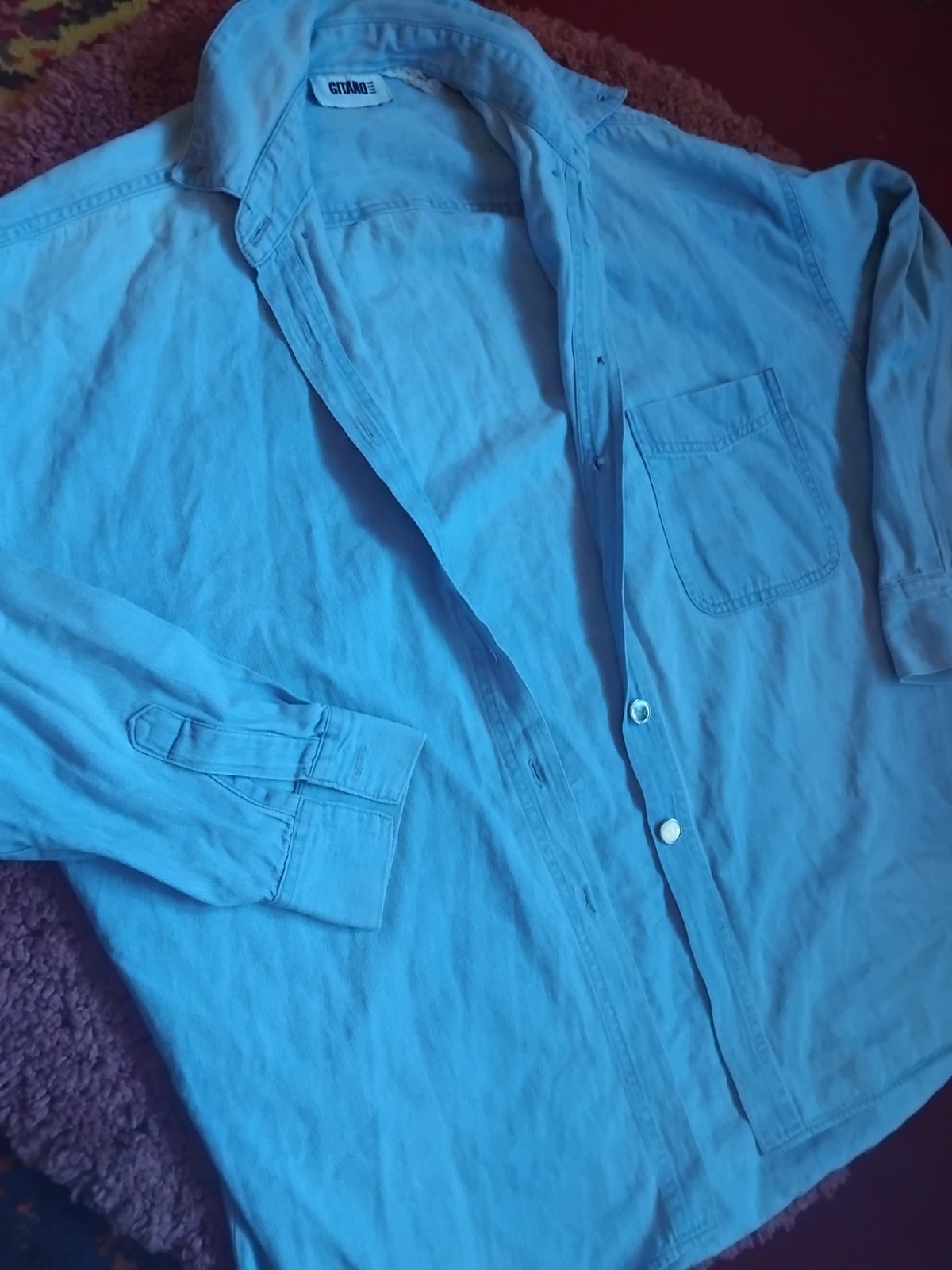krásna veľmi kvalitná košeľa z pevnej rifloviny . v páse sa sťahuje zaujímavým opaskom s taštičkou. veľkosť UNI , sedí na rozne veľkosti, je to volnejší strih a menšie veľkosti si košeľu stiahnu...