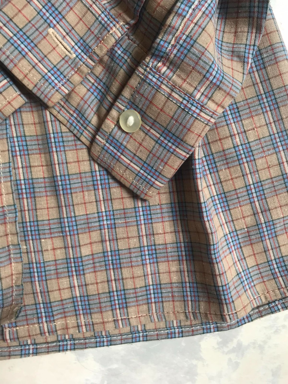 kvalitná neznosená unisex károvaná košeľa,nekrčivá úprava,67% polyester,33% bavlna,dlžka celkom = 66 cm, dlžka meraná pod pazuchou smerom dolu = 42 cm,šírka = 51 x 2 cm, ramená = 15 cm, rukáv = 61 cm