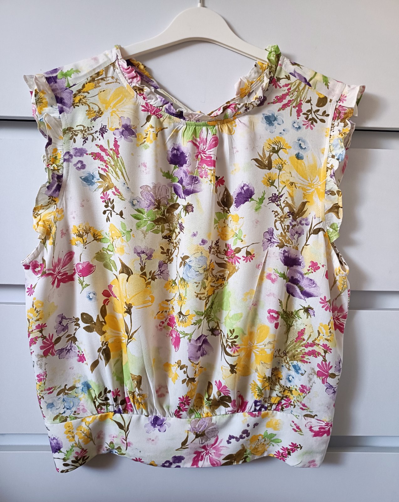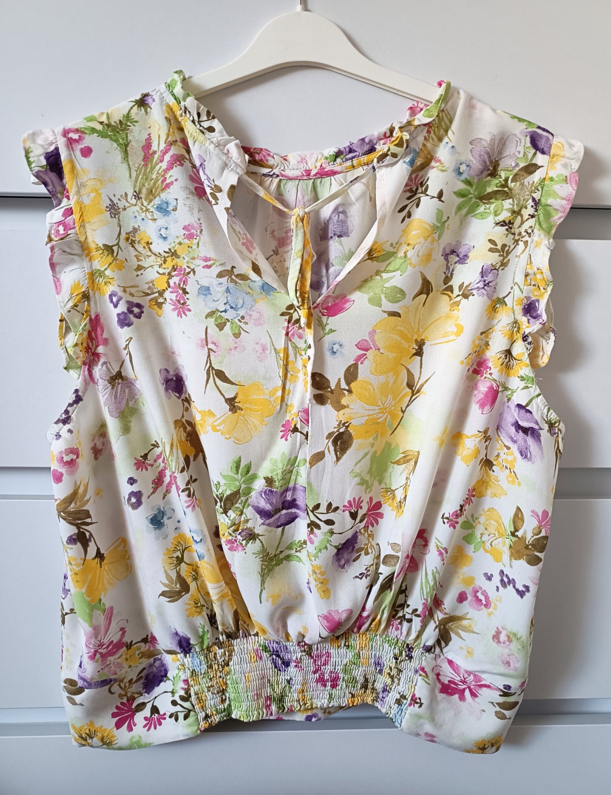 Ľahká letná blúzka, rukávy a golier do gumičky, miery na foto, bez poškodení, výborný stav, neelastická.