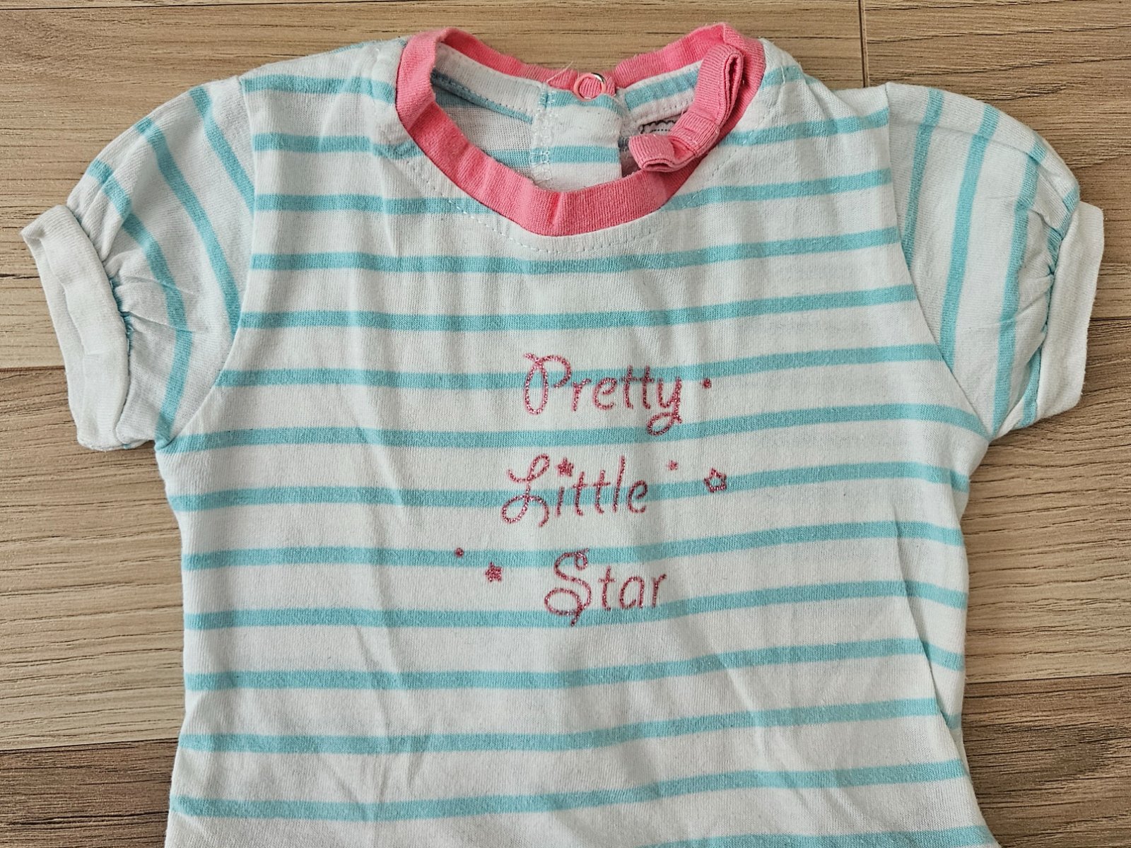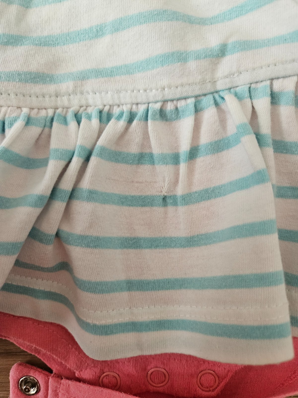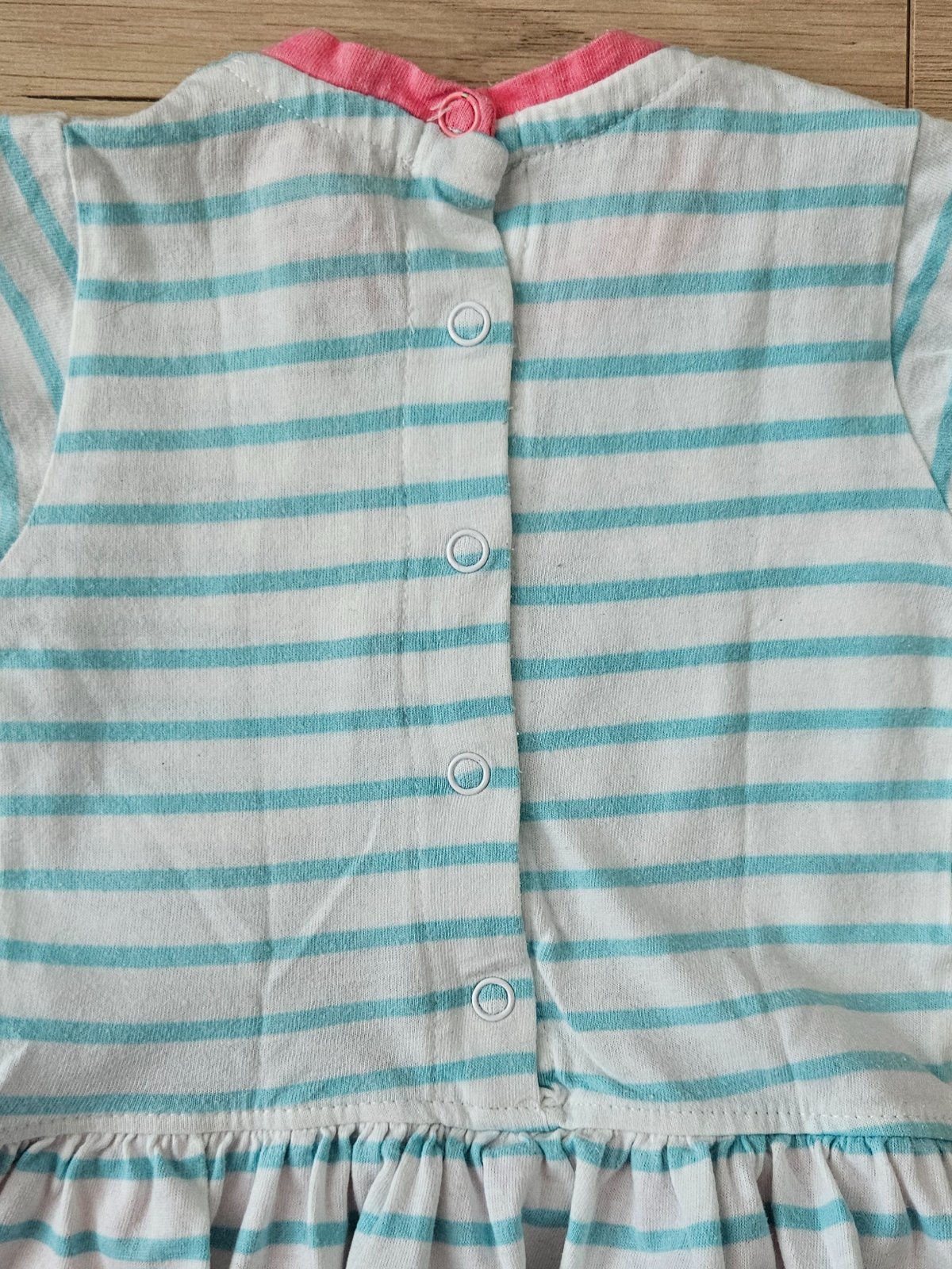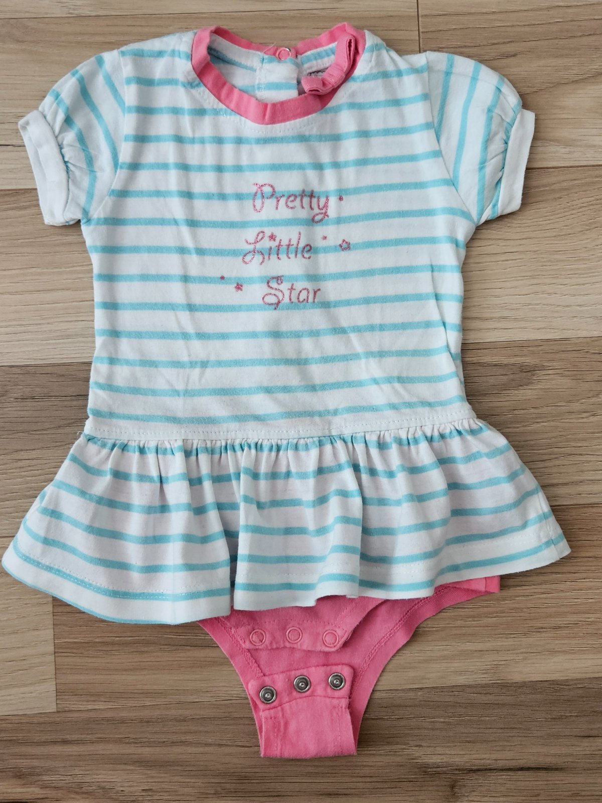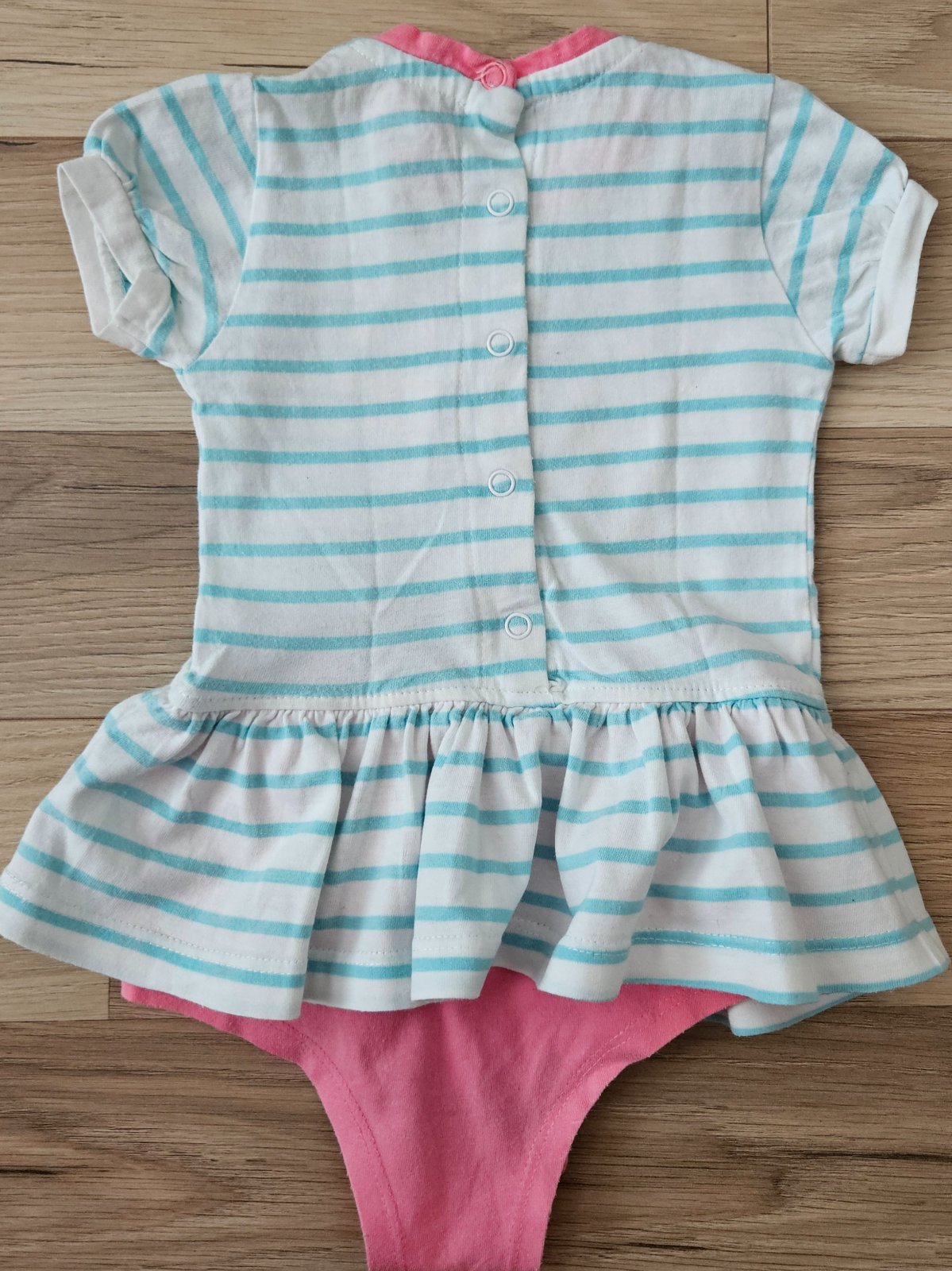 Pekné šatočky s body-čkom super na leto . Vzadu na zapínanie pre ľahšie obliekanie. V predu na volániku zašitá malá dierka ale nie je to vidno.