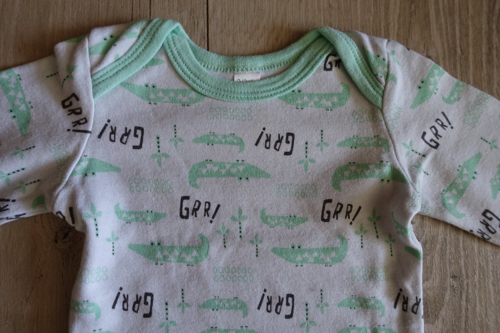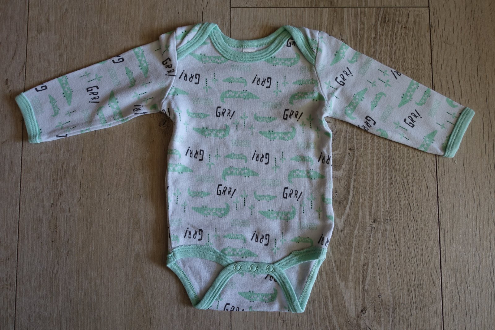 Darujem k nákupu na vyžiadanie bavlnené body s krokodílmi vhodné už len pre nenáročnú mamičku. Bolo nosené pár krát, žiaľ už vidno chĺpoček z prania. Ale je mäkulinké, pohodlné, bavlnené. Ak len po byte ešte poslúži. Celková dĺžka 35 cm (po zapnutí spodných pukačiek). (B)