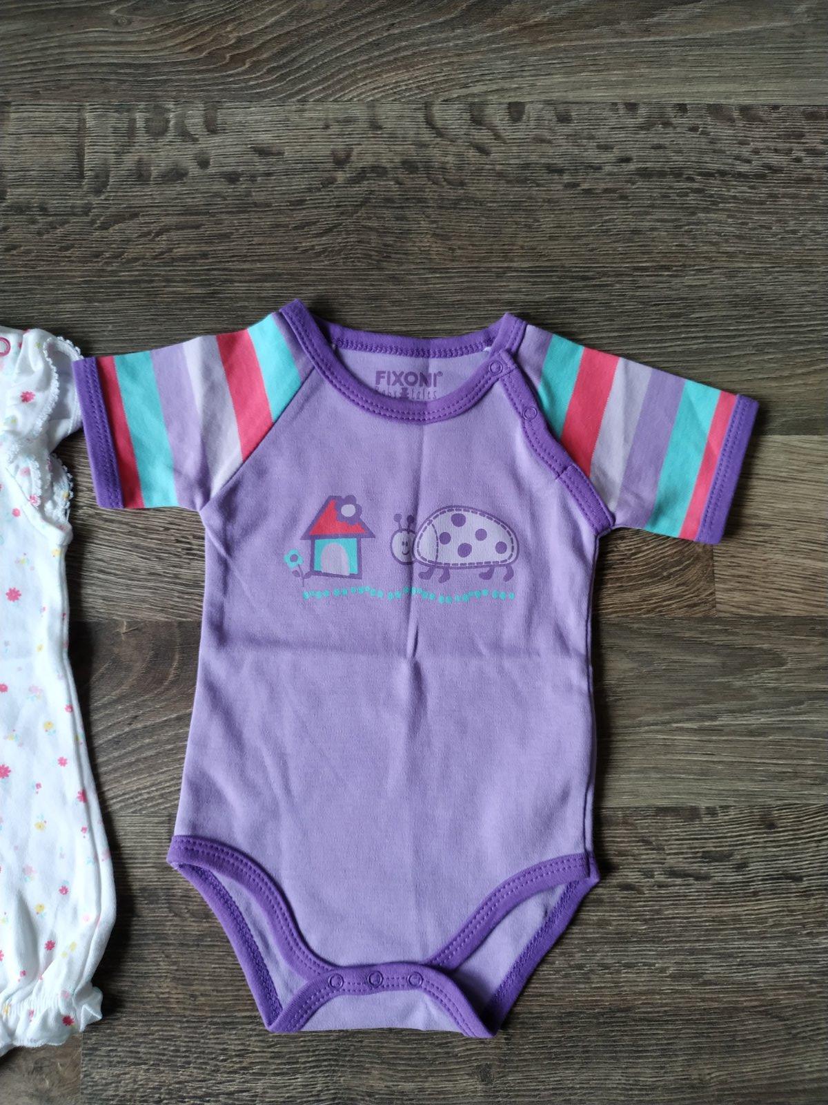 * Fialkovy kus (značka Fixoni), velkost1-3mes (56), zapínanie na cvoky spredu od ramena smerom k podpazusiu a dole na plienke, vpredu krásny vzor lienky, domčeka a kvietku.