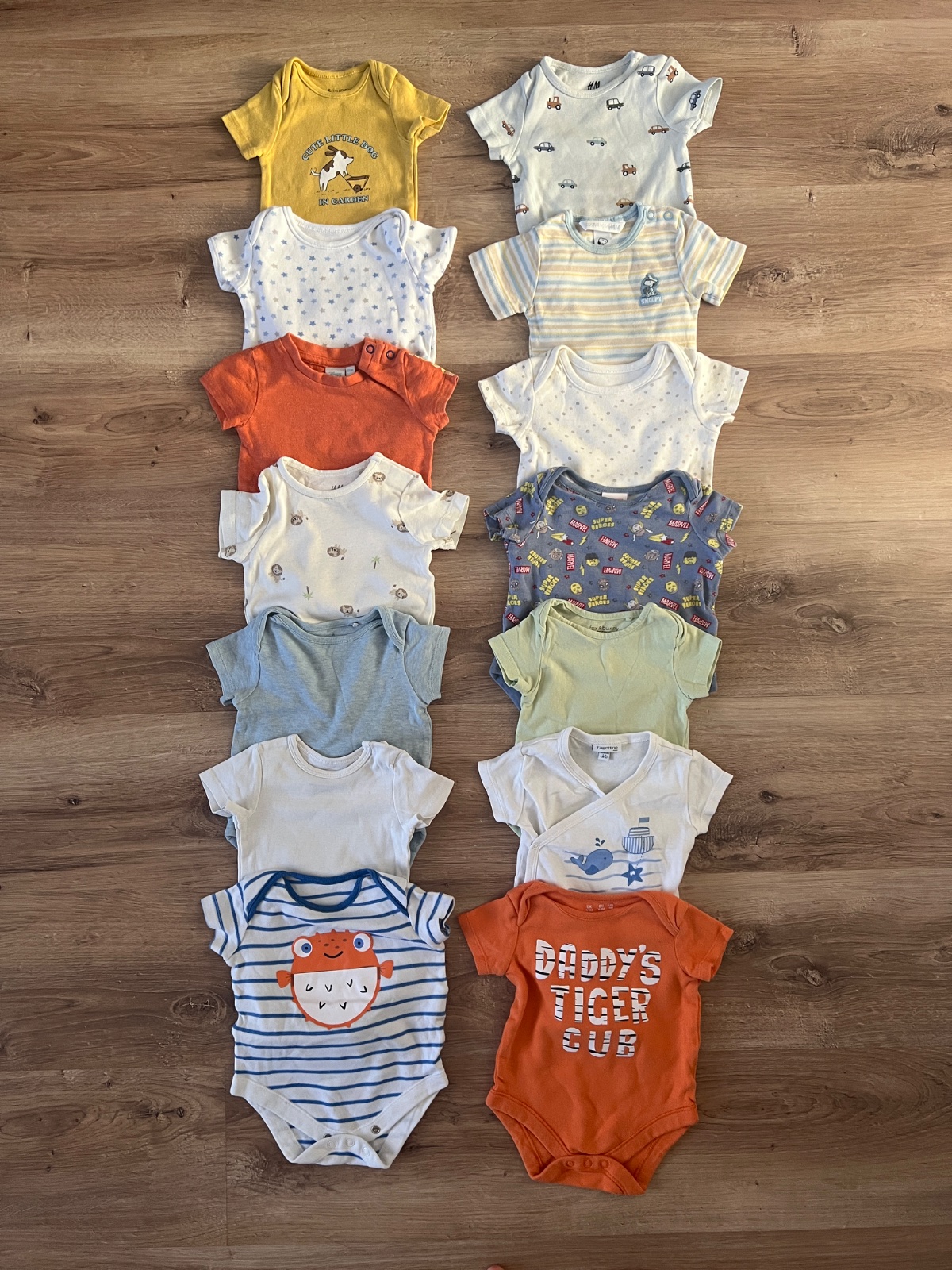 Nosené. Sadnú tak na 3-6 mesiacov. Plus mínus. My sme vynosili cca od 4-7 mesiacov, závisí od veľkosti bábätka. Mix značiek ako H&M, F&F, a iné.