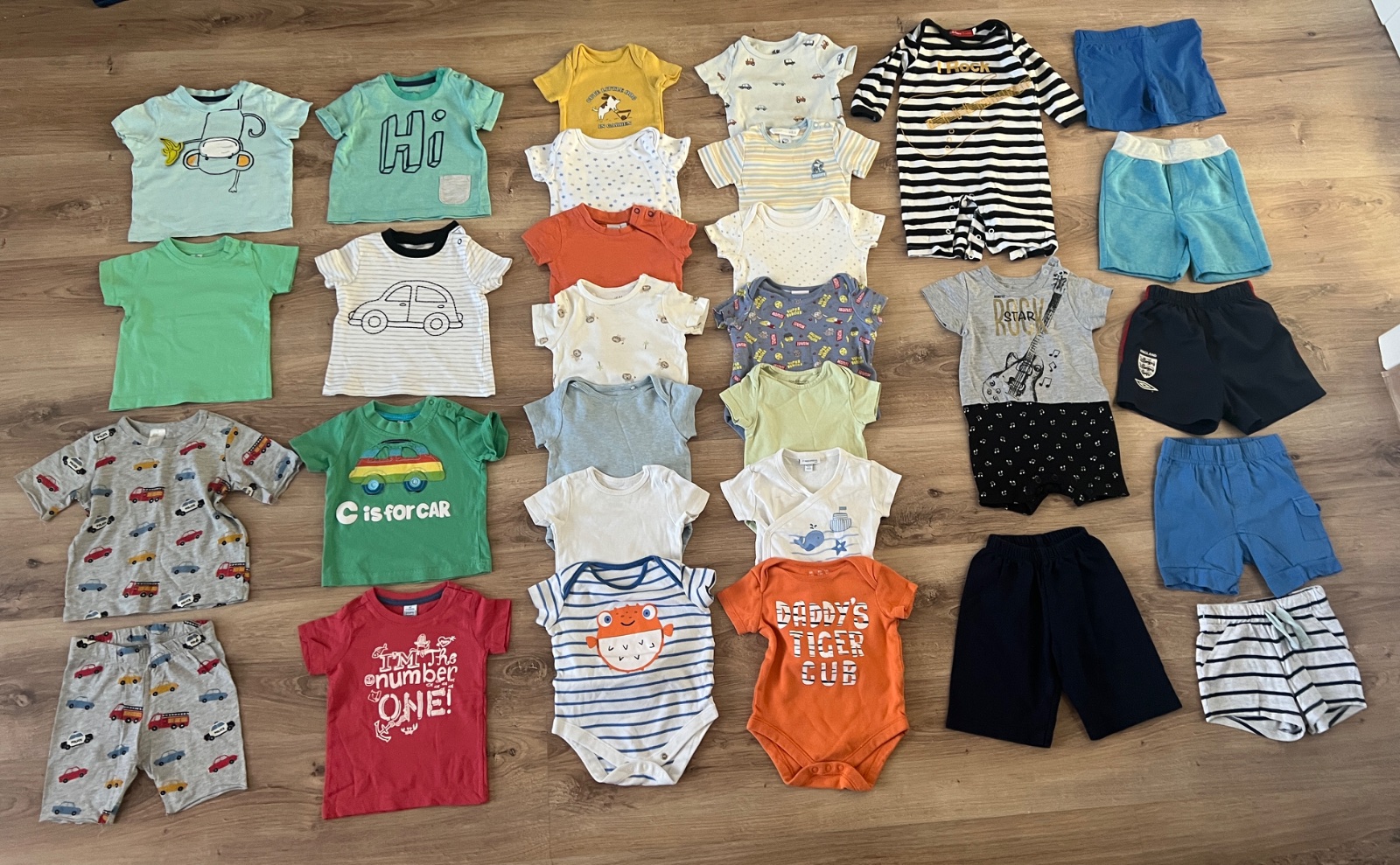 Plus 2x opaľovačky a súprava H&M s motívom áut (odstrihnuté rukávy a nôžky) a tričká a kraťasy.
