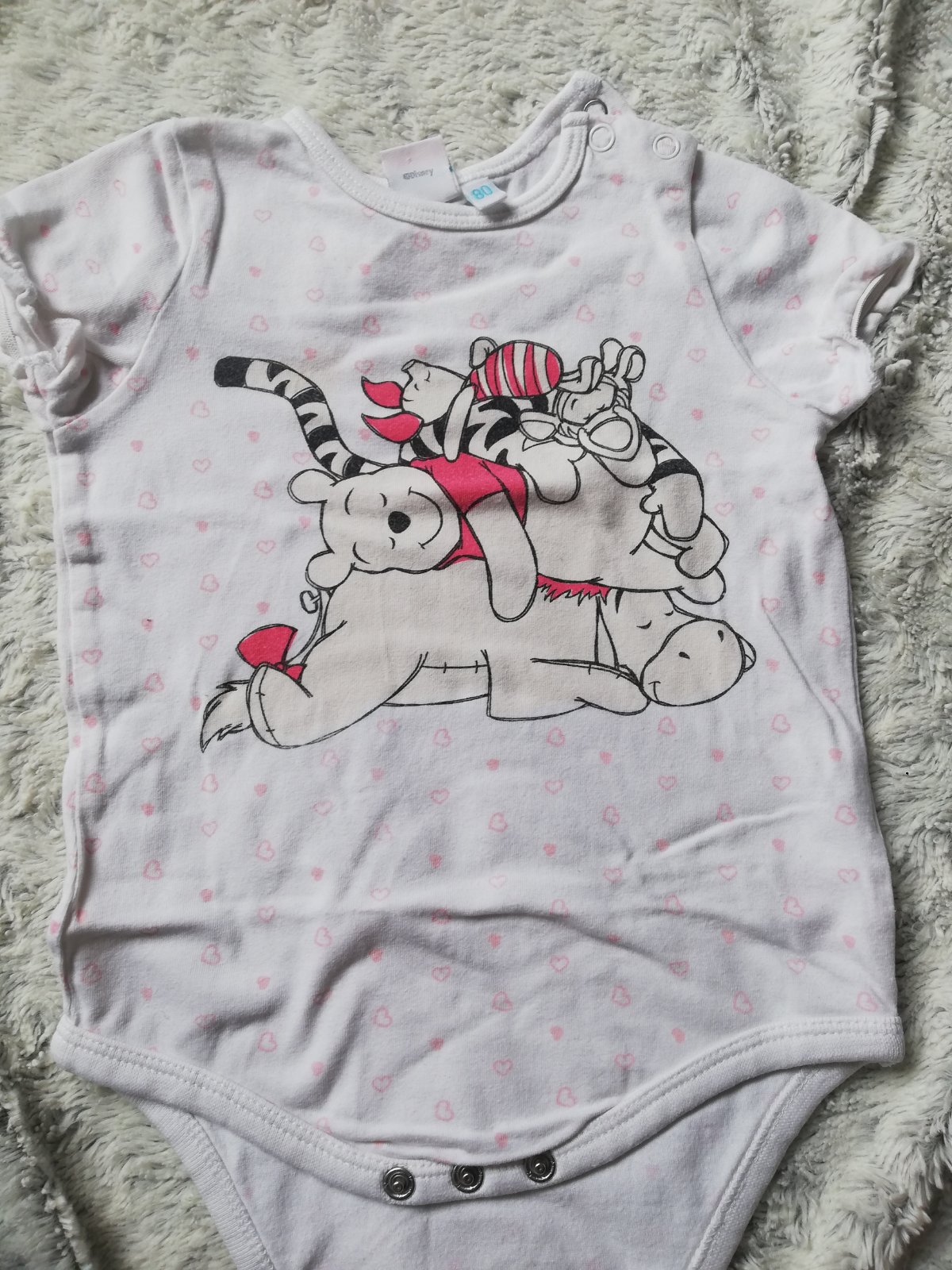 Predám 6ks body krátky rukáv, sem tam fliačik, ale nič hrozné, alebo že by to nejak kričalo, na doma úplne super, bez dier, celorúžové disney bez potlače len opraté.