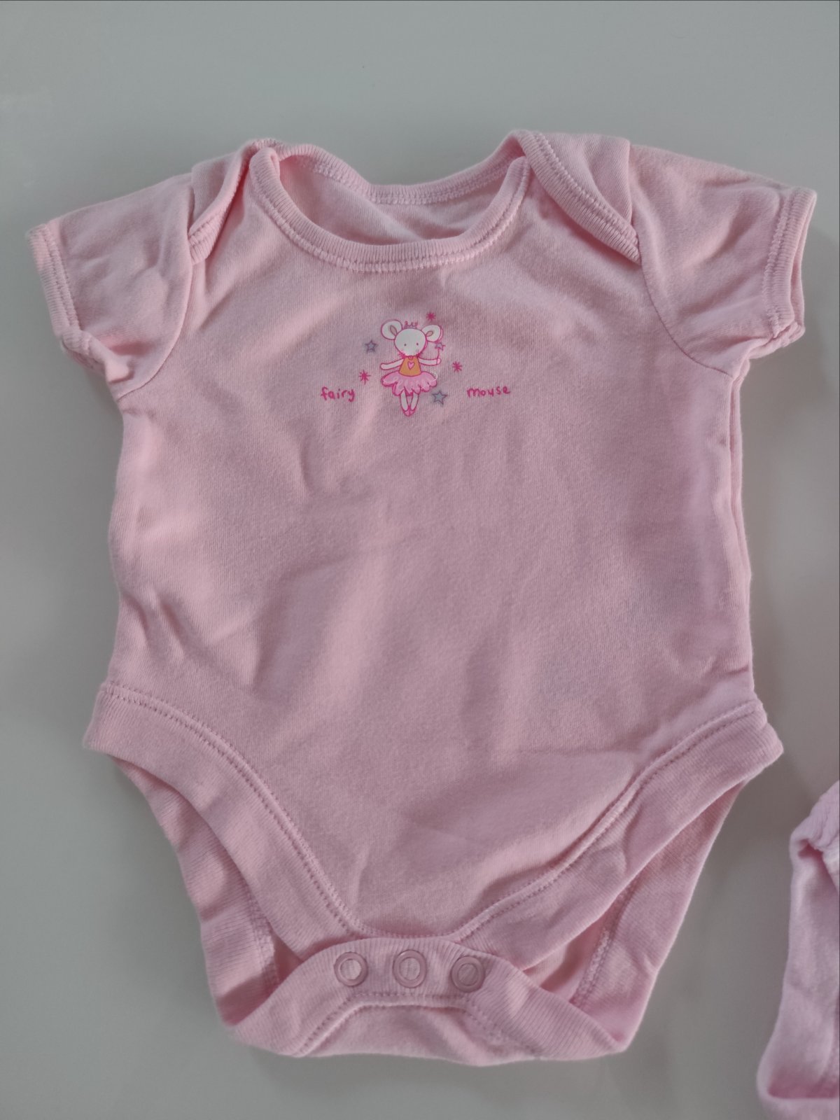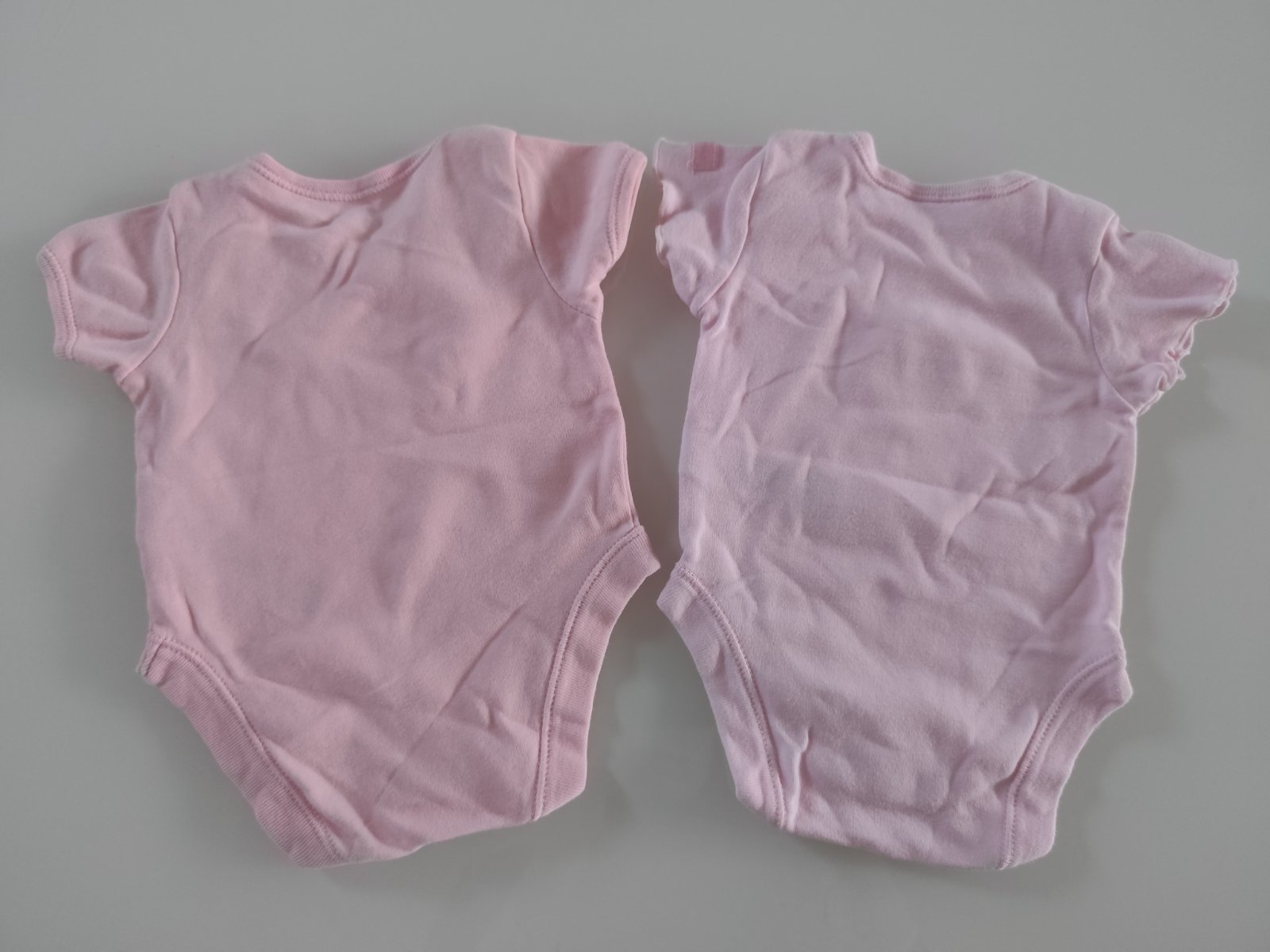 Predám krásne nové ešte nepoužité detské dievčenské body 2 ks. Pre novorodenca výška 56cm a váha 5kg. Cena 1,50€ za oba.