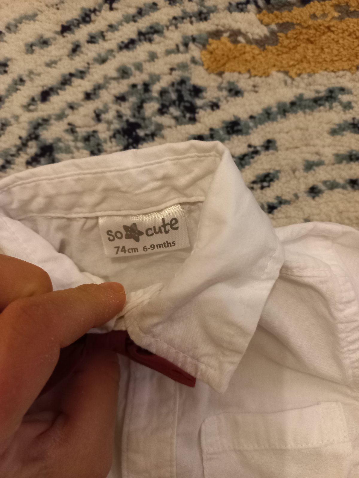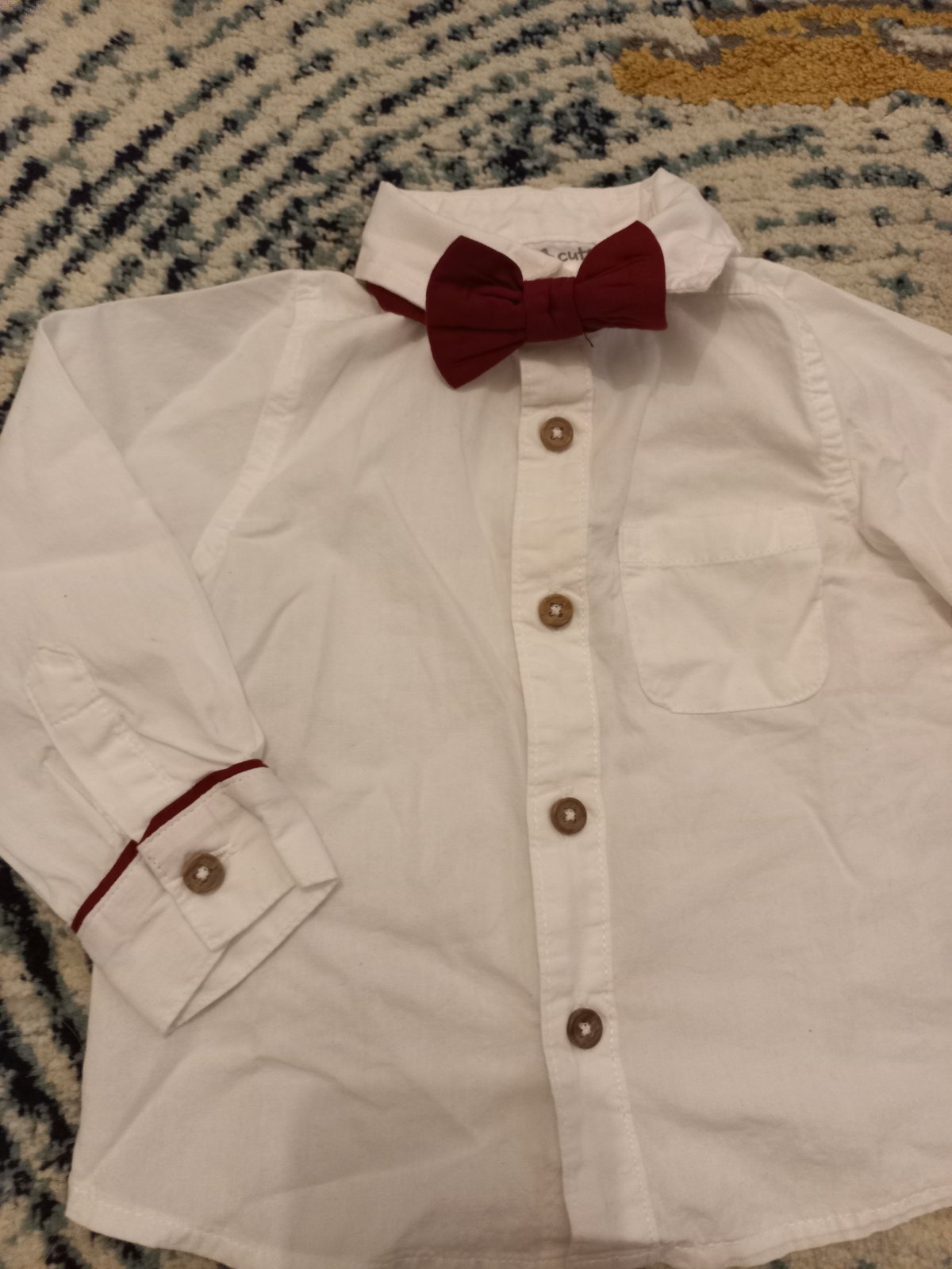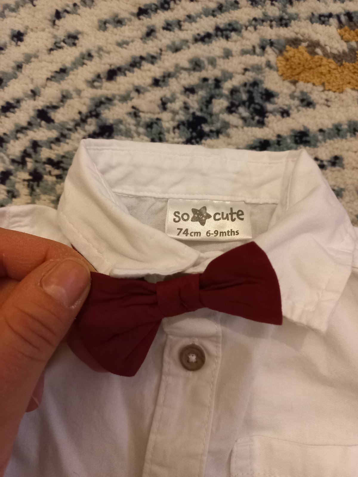 Raz oblecene koselove body s bordovym motylikom na suchy zips. Pepco, velkost 74. Cena 3€.