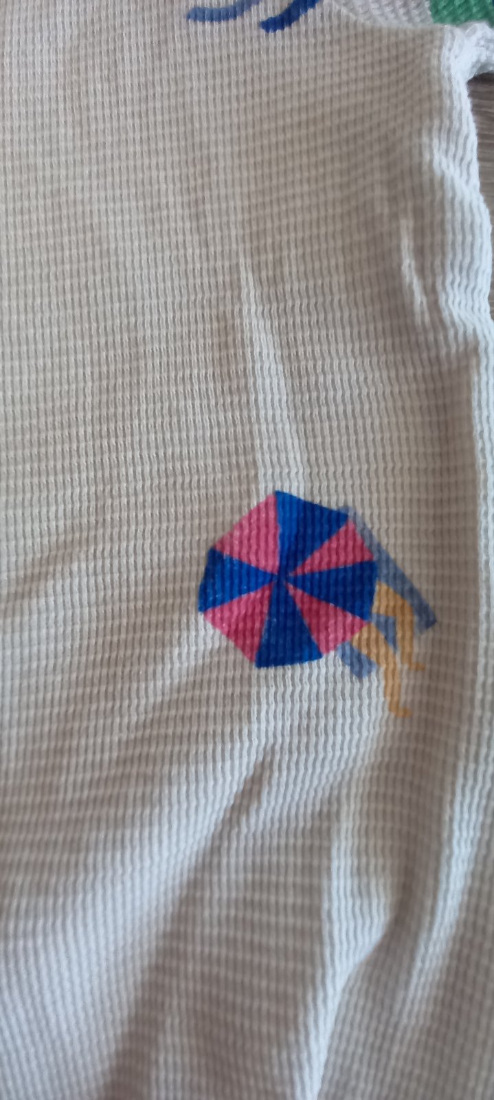 Krásne oversize body na leto,, lážo-plážo,, , vafľová štruktúra látky, 100% bavlna, pár krát ponosené, bez poškodenia, cvoky na ramene a v rozkroku. PC 35€, bez poštovného.