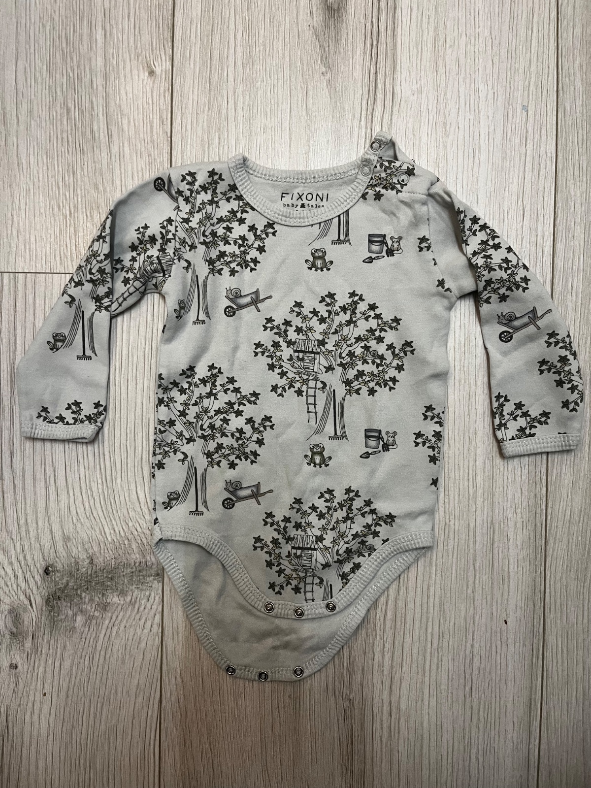 Predám bledosive vzorované body s dlhým rukávom značky Fixoni, veľkosť 68 (3-6 mesiacov)