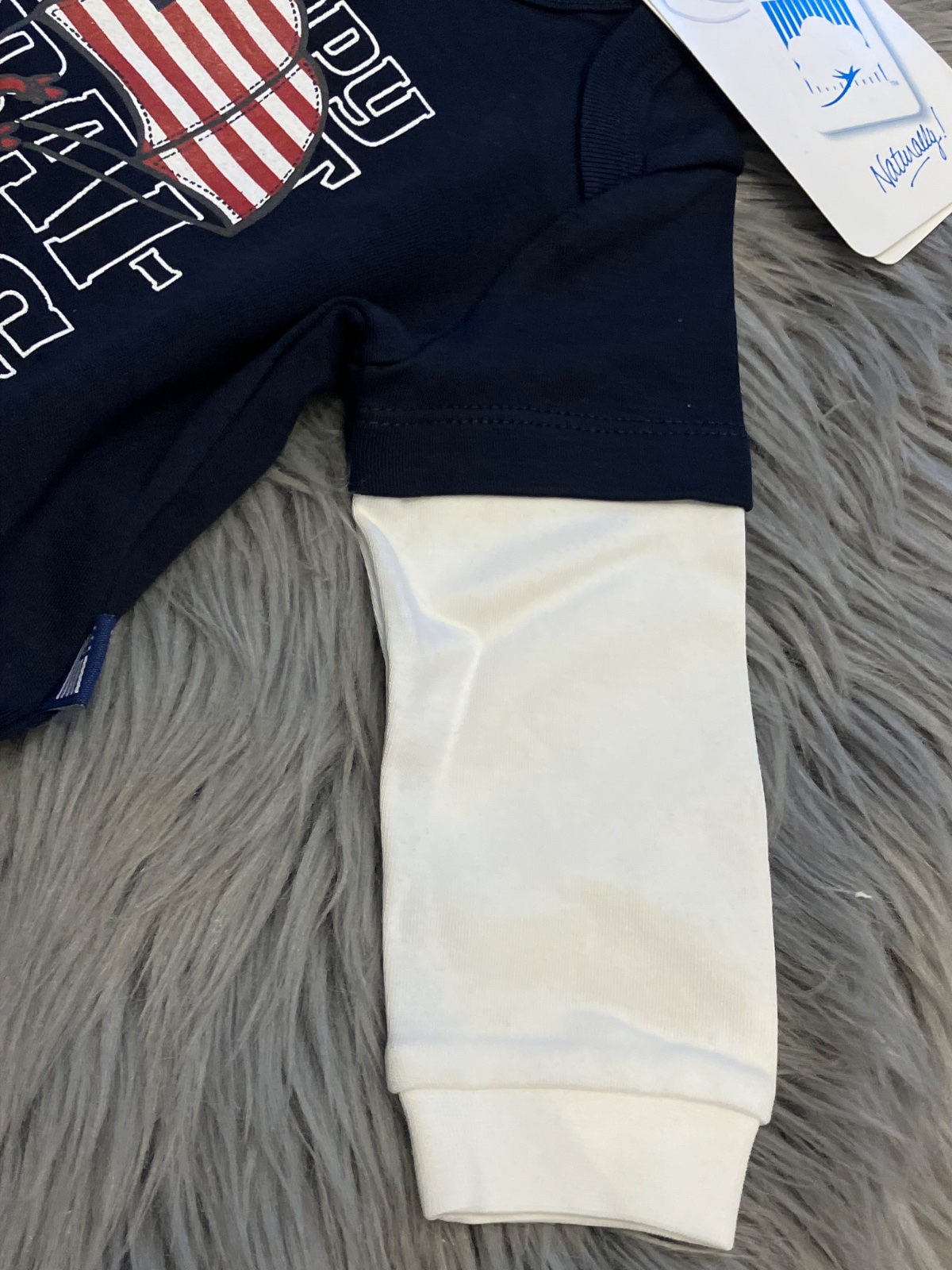 Chlapčenské tmavomodré body s dlhým rukávom. Elastické. Farba: tmavomodrá/biela. Materiál 100%bavlna.