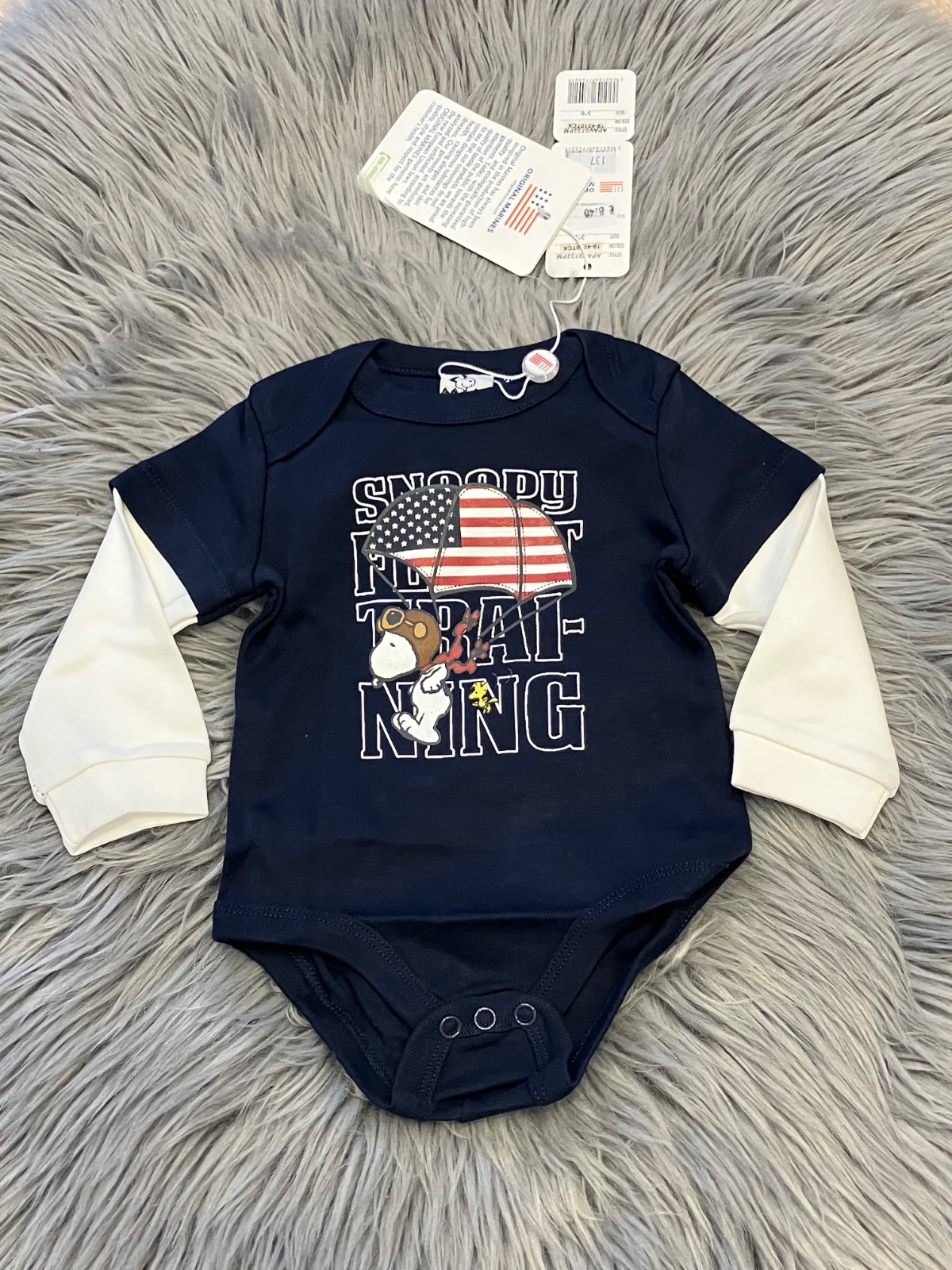 Chlapčenské body s potlačou Snoopy (3-6 mes.)