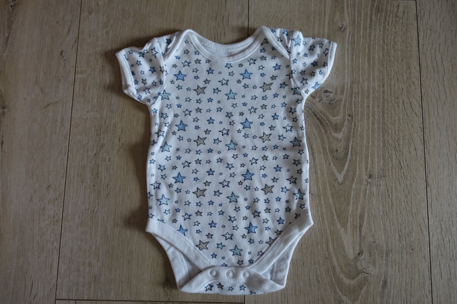 Predám bavlnené body s hviezdičkami č 68-74, váha je pre detičky do 9,5 kg. Bolo kupované nové, vypravé a mali sme ich 1x. Je mäkučké, nemá ani fľaky, ani žmolky. Celková dĺžka od pliecka po spodok pri zapnutí všetkých body je 37 cm. (B)