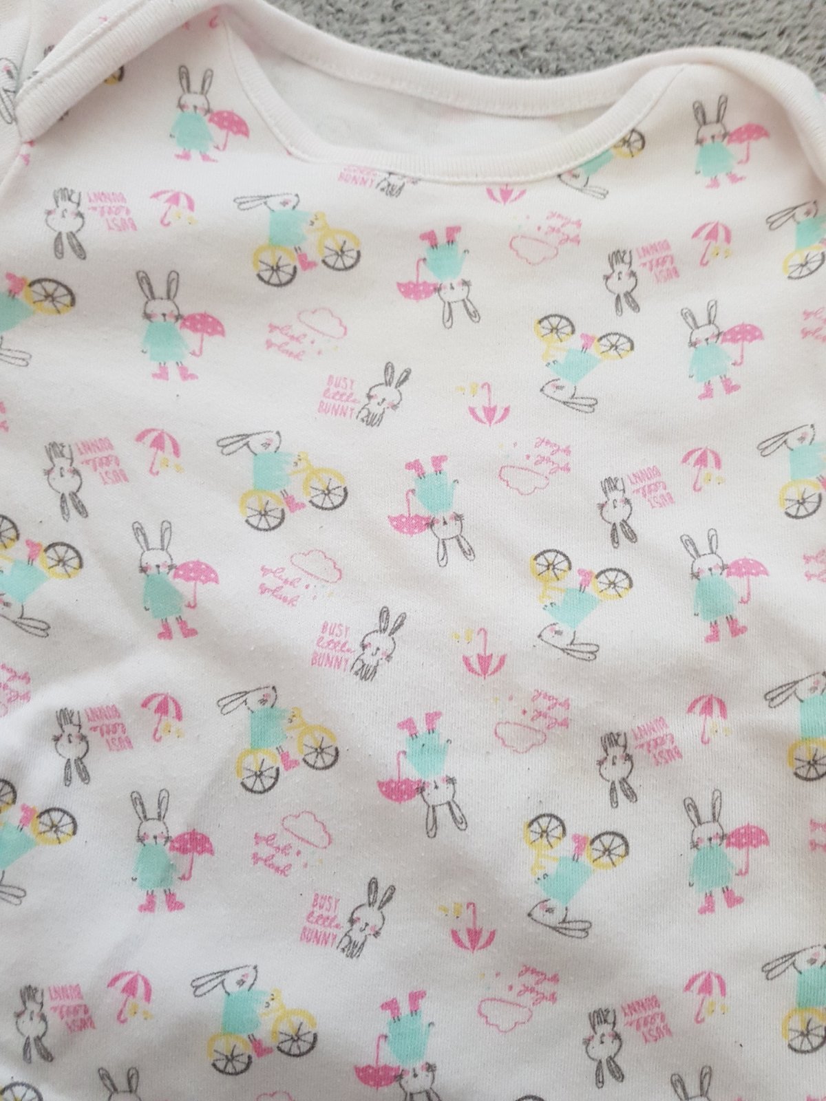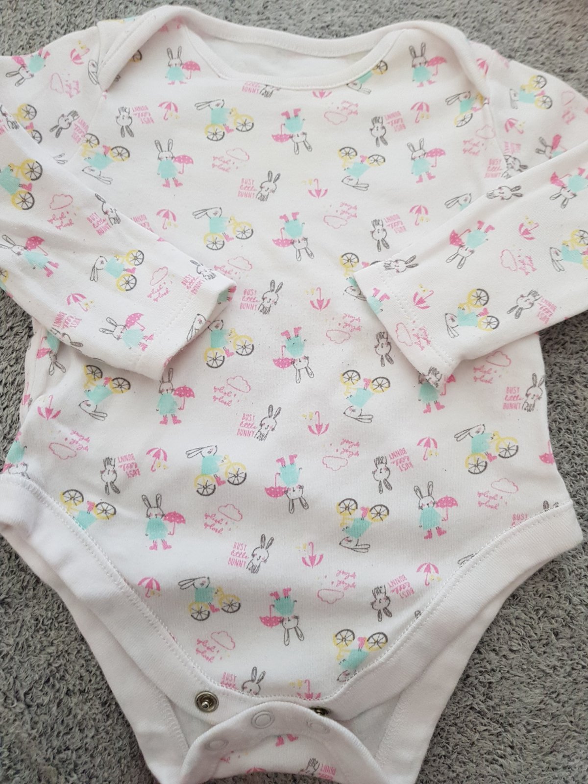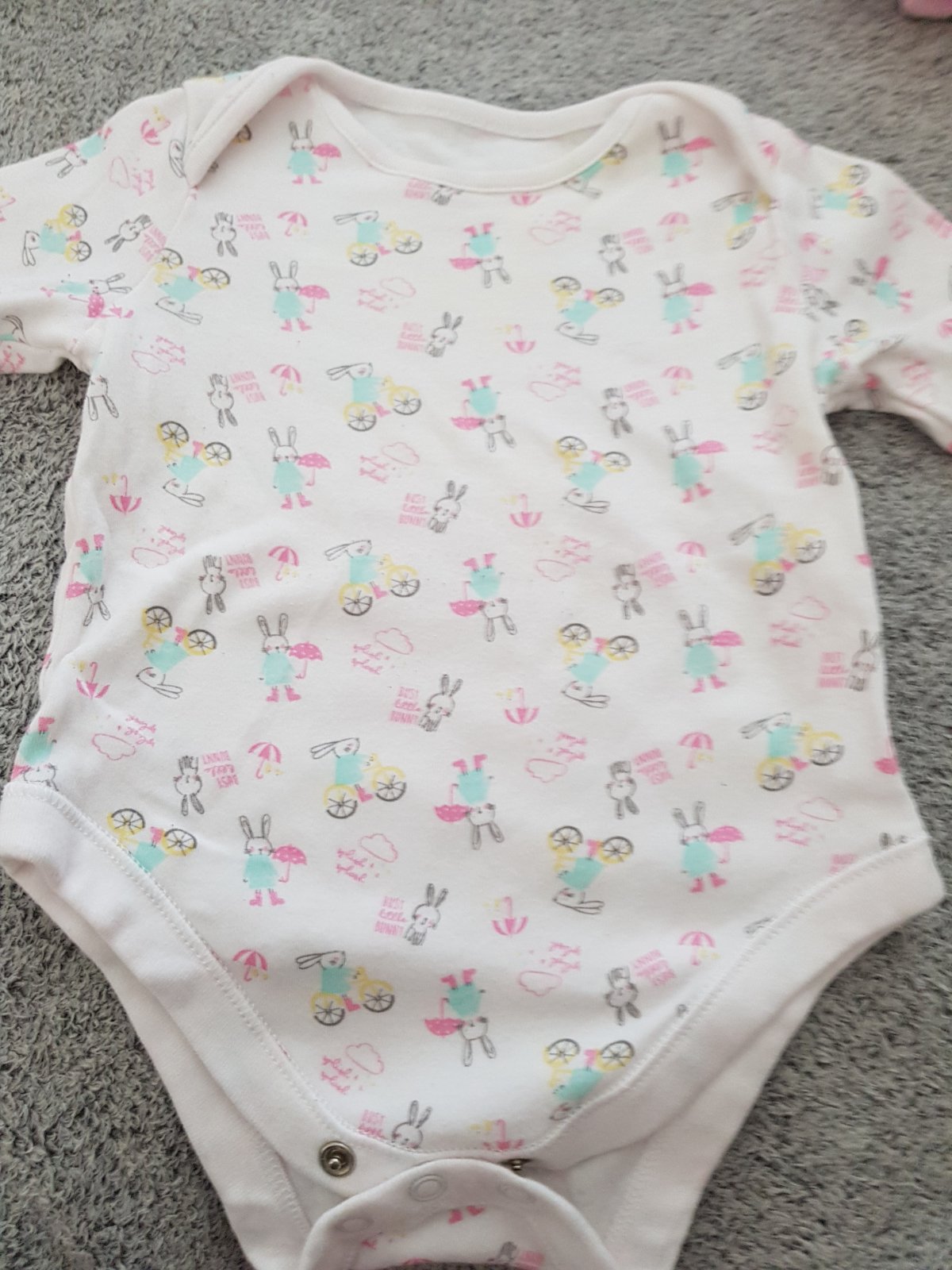 Zajačikové body,dobrý nosený stav,malý svetlý fliačik,viď foto,veľkosť 6-9mesiacov.