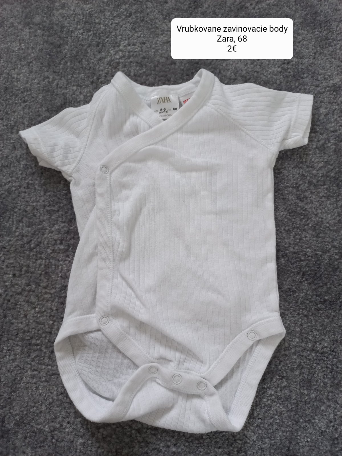 Ponukam na predaj dvojo triciek s kratkym rukavom, nenosene vo velkosti 68. Cena 4 eur za oboje, 1,50 eura za kus, plus postovne.