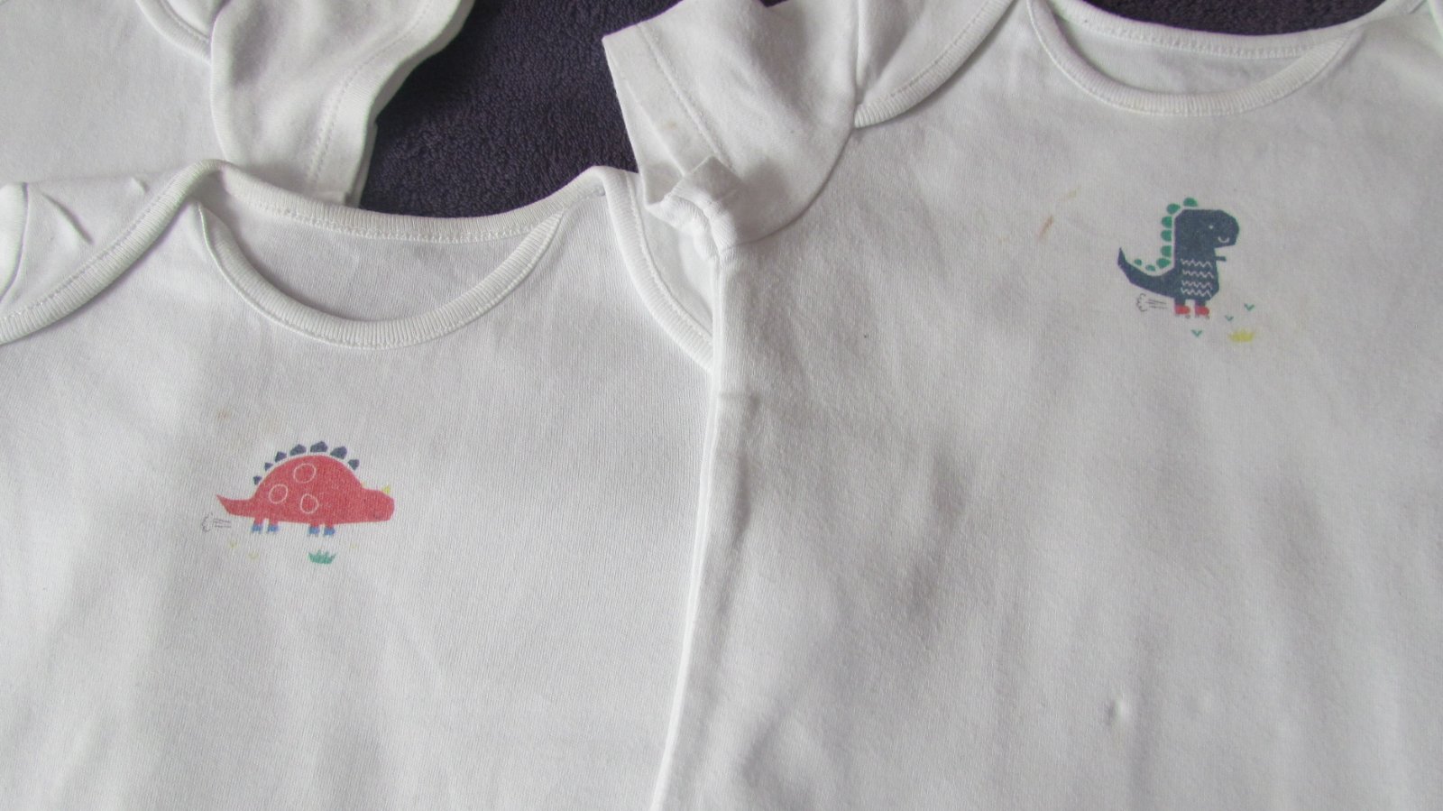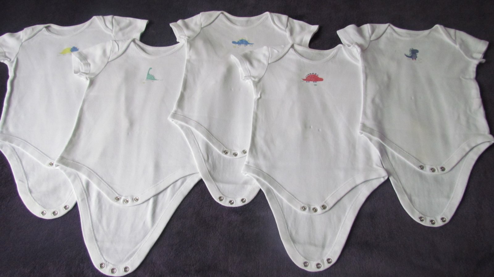 Ponúkam na predaj 5 bavlnených body vo veľkosti 86, biele s malými motívmi dinosaurov. Nosené, ale v dobrom stave. Na dvoch body sú drobné fliačky, viď foto. V prípade záujmu premeriam a lepšie odfotím. Uprednostním predaj spolu.