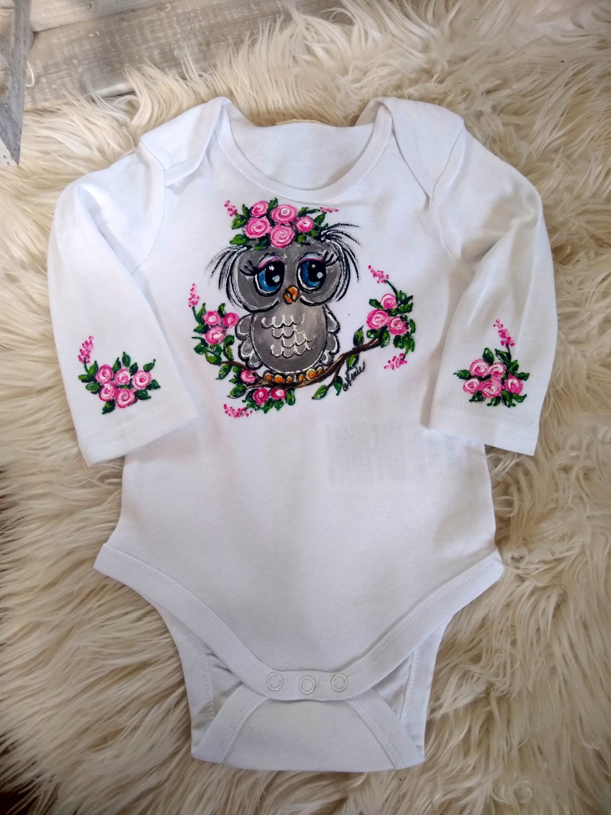 Maľované bavlnené body. Motív inšpirovaný internetom, dotvorený mnou. Prať je možné do 40°C na šetrnom programe, alebo ručne a s láskou, s akou aj ja maľujem. Rada domaľujem aj vrecúško(4,50e.) a aj darčekovo zabalím (2,5e.)