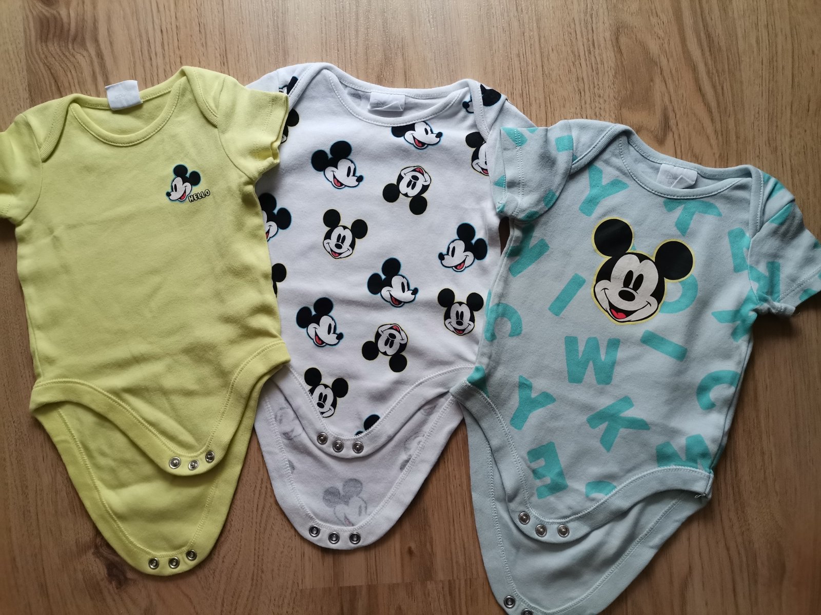 3 body v peknom stave bez fľakov a dier. Aplikácia Mickey na jednom bodynku jemne prasknuta, všetko vidieť na foto.