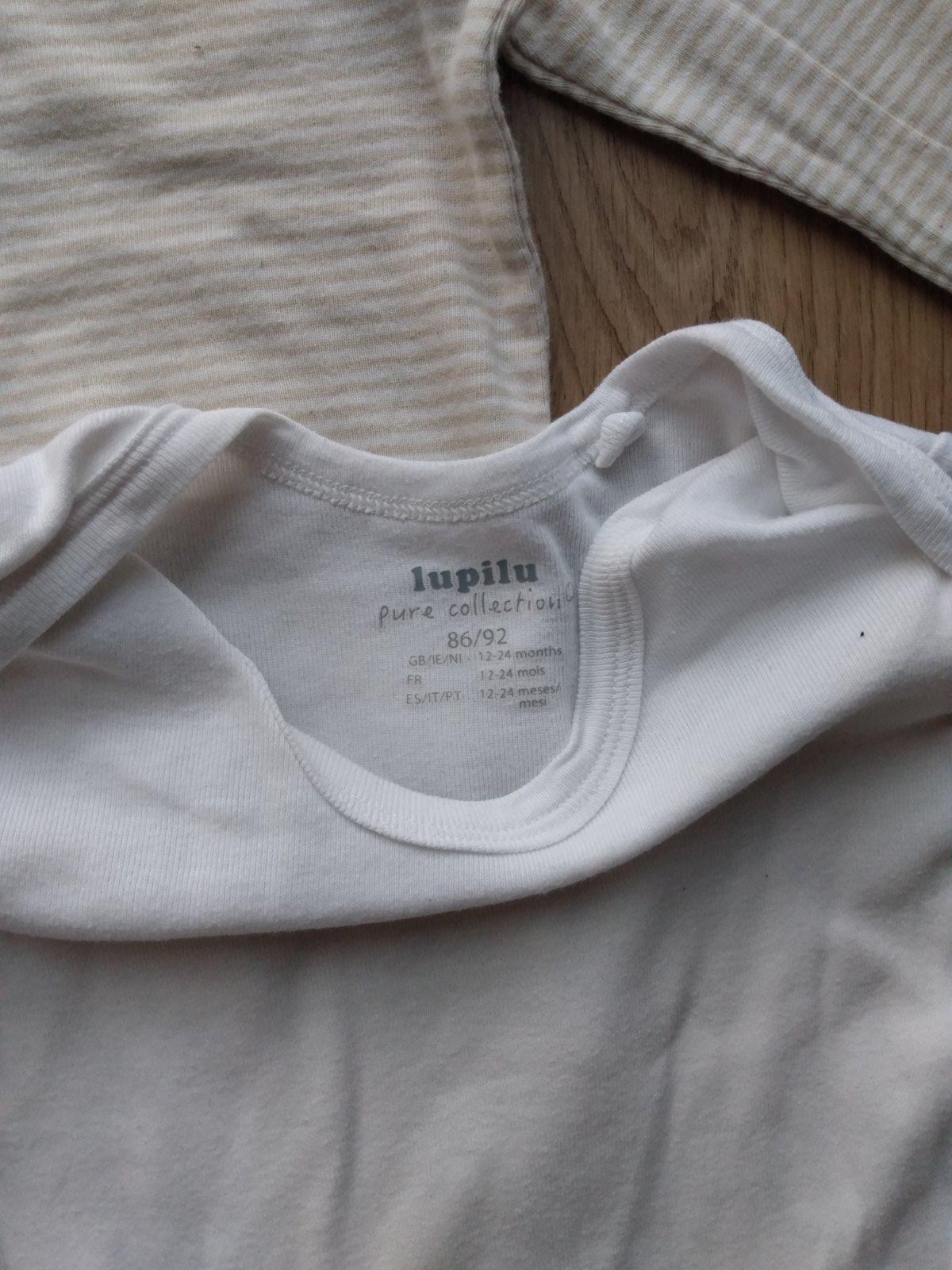 Set 2 body z veľmi príjemnej bavlny - Pure collection od lupilu. Veľmi pekný nosený stav, bez poškodení. Veľkosť písaná 86/92, resp. 12-24 mesiacov. Cena bez pošty za obe spolu