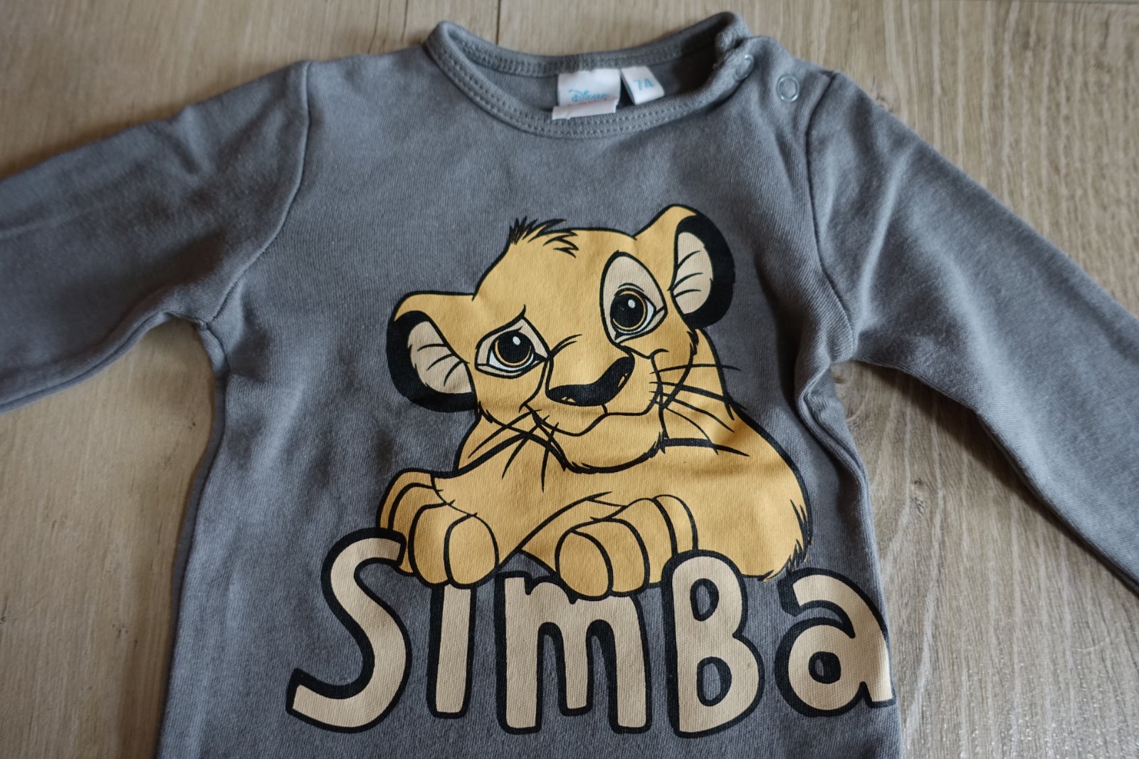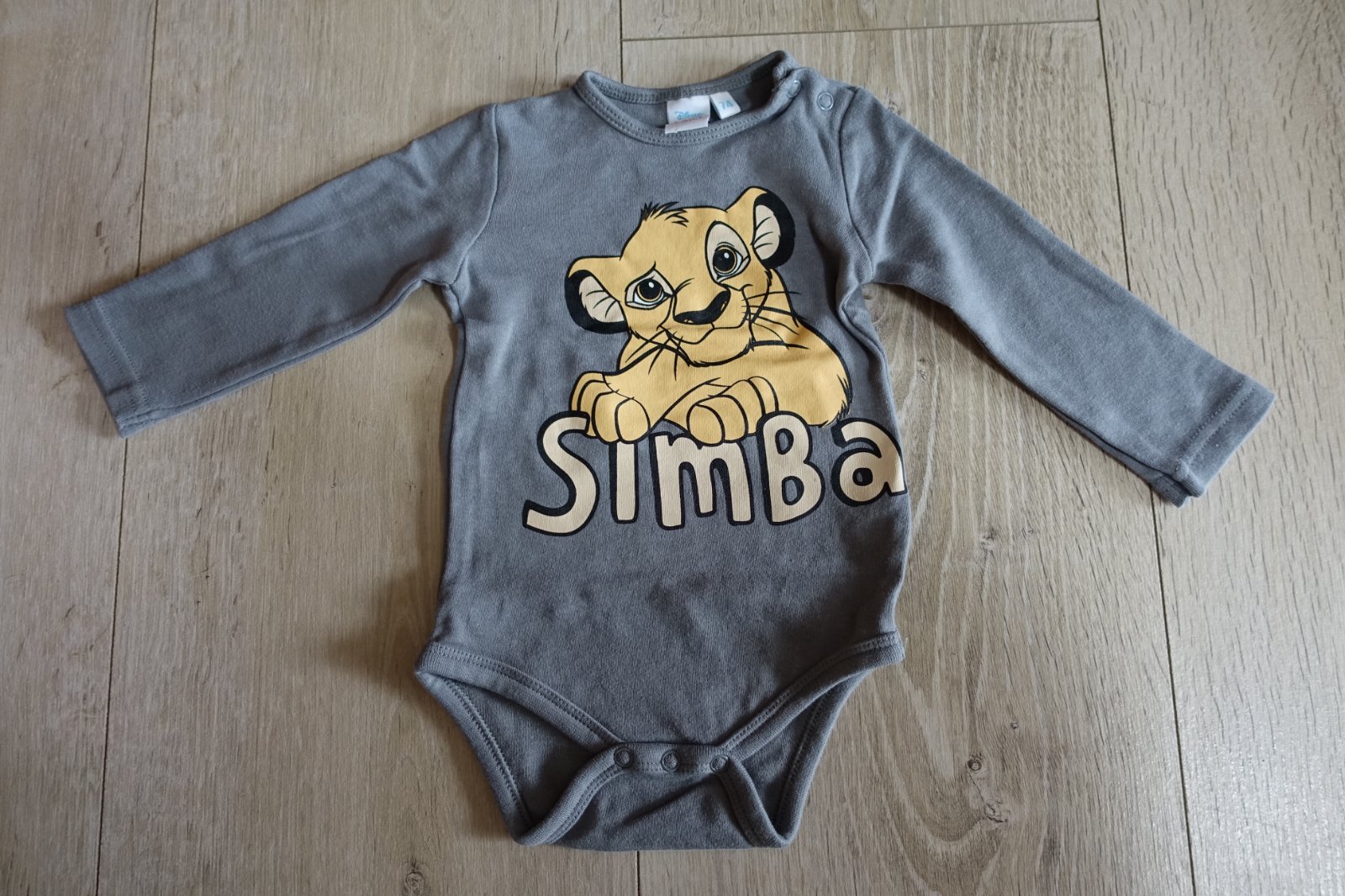 Predám bavlnené body so Simbom. Bolo kupované nové v Tescu, mali sme ho 1 krát, ale je mäkučké, nemá ani fľaky, ani žmolky. Trolinka sa po praní urobil na ňom chĺpoček z prania, vidno ho iba pri naklonení, ale nie je žmolkavé, len taký začínajúci chĺpoček. Celková dĺžka od pliecka po spodok pri zapnutí body je 38 cm. (B)