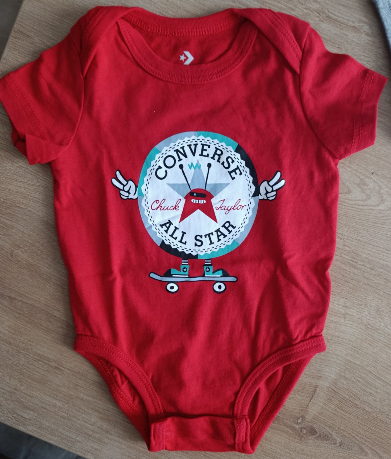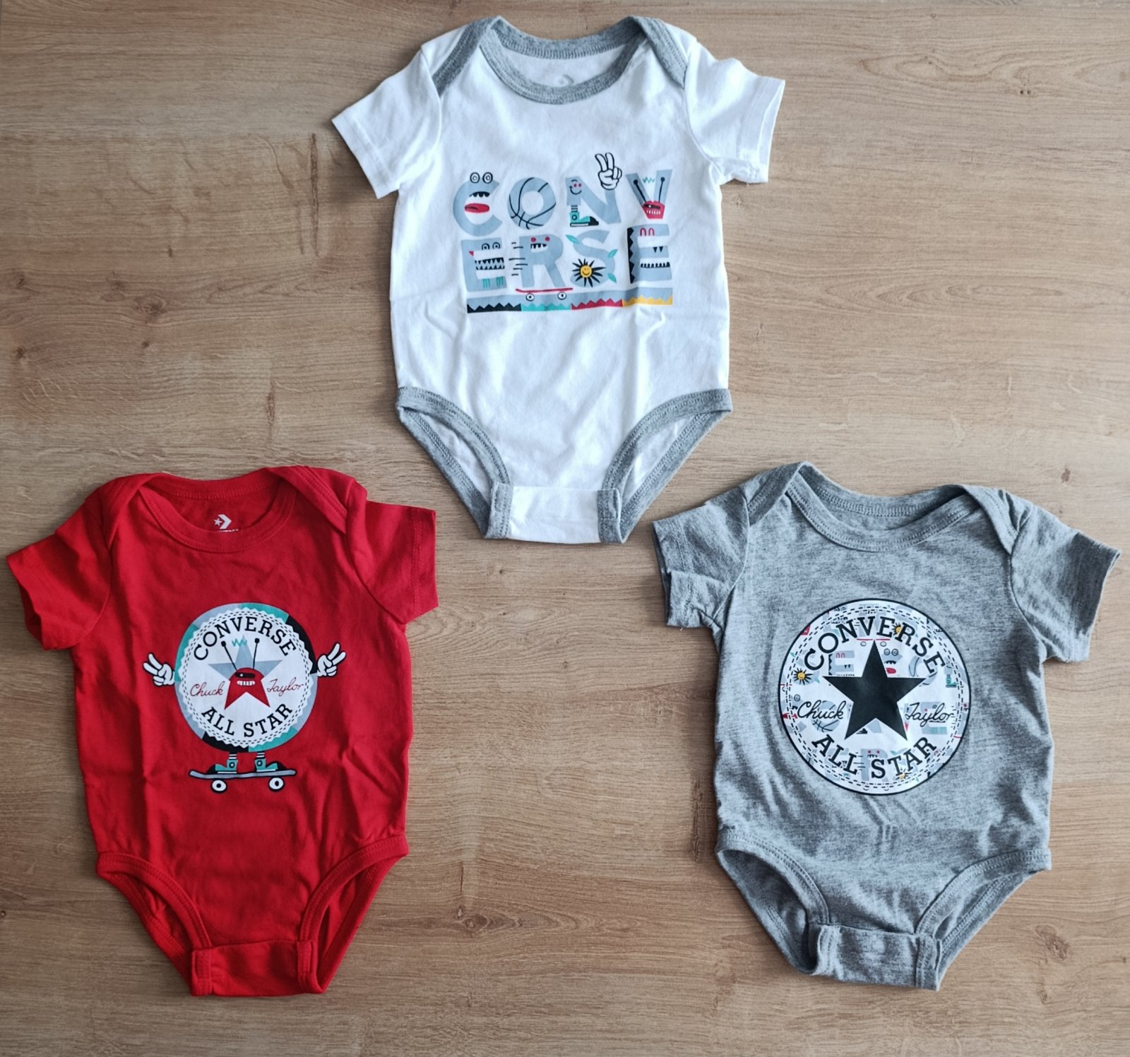 Predám úplne nenosené detské body zn. Converse, veľkosť 56-62, do 3 mesiacov. Cena za 3 kusy je 5 eur. Uprednostňujem platbu vopred na účet.