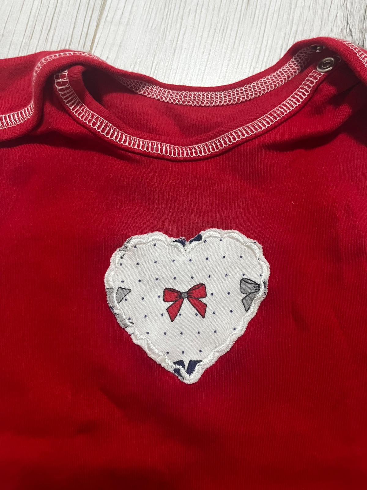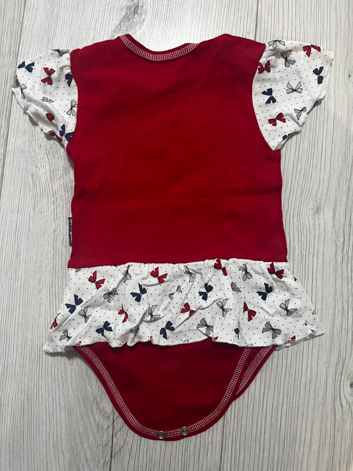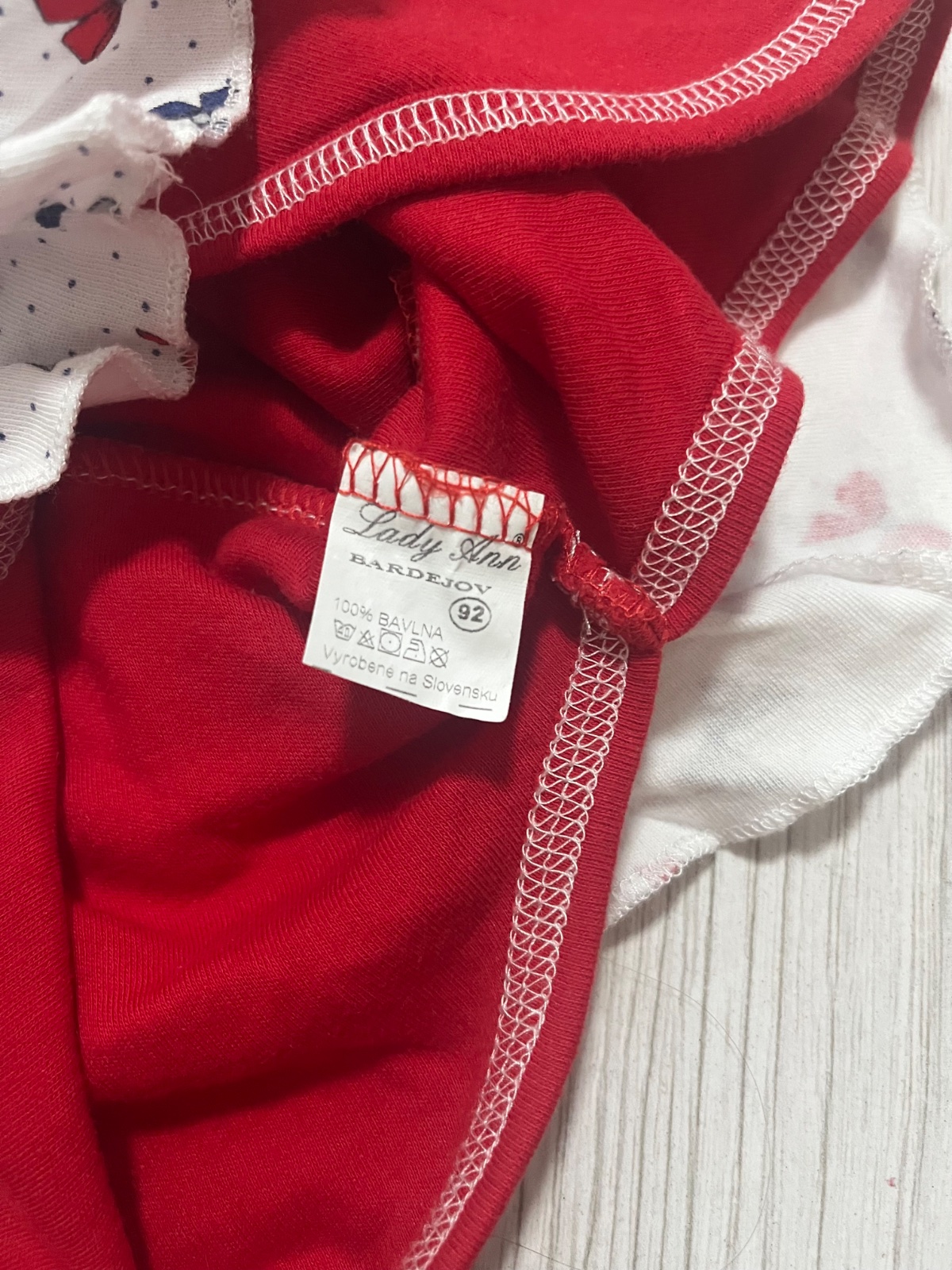 Predám vo výbornom stave červene kratkorukavove body s volánom a srdiečkom. Slovenska značka: Lady Ann, veľkosť: 92