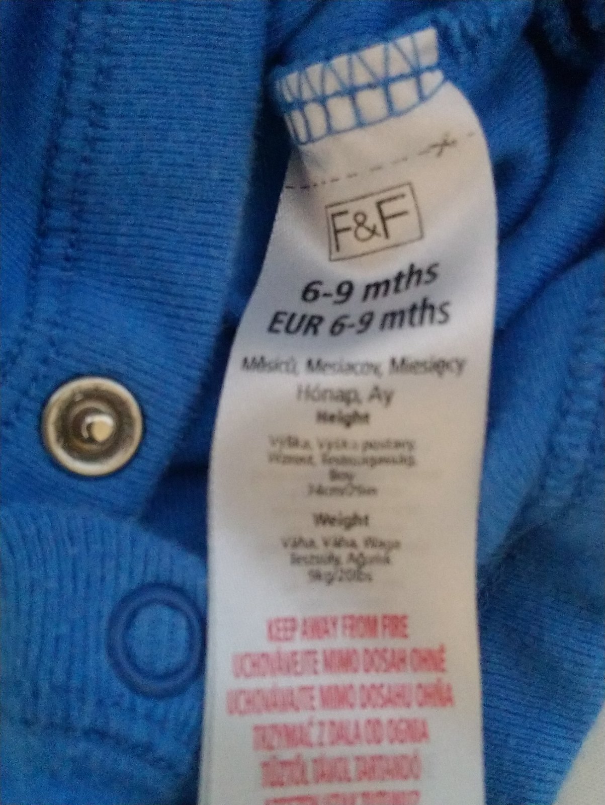 uvádzaná veľkosť na štítku 6-9 mesiacov, 68-74 cm,